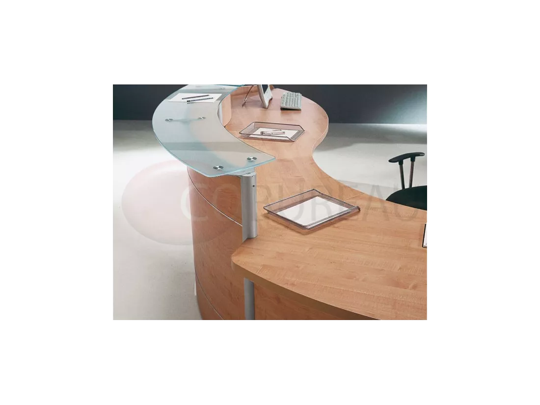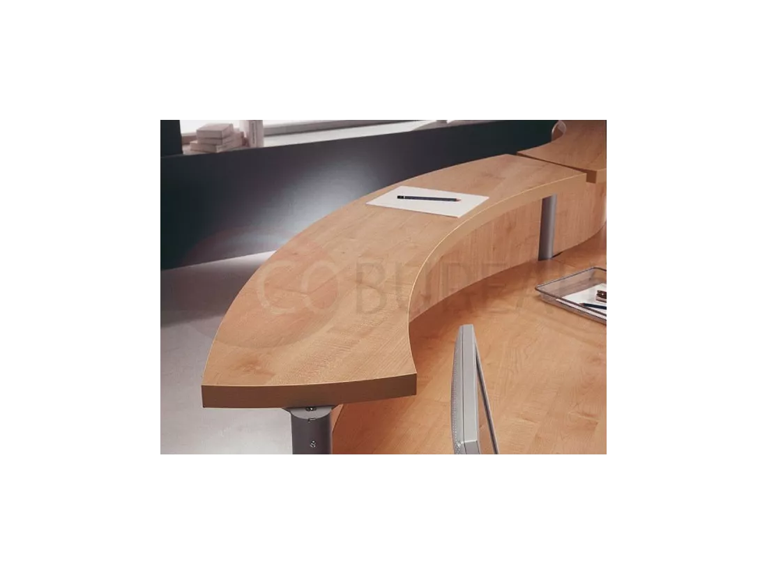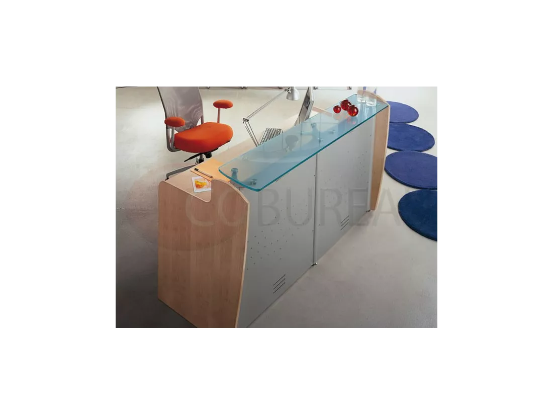 Top réception linéaires et courbes en mélaminé ép. 38mm, ou en verre trempé dépoli ép. 12mm.