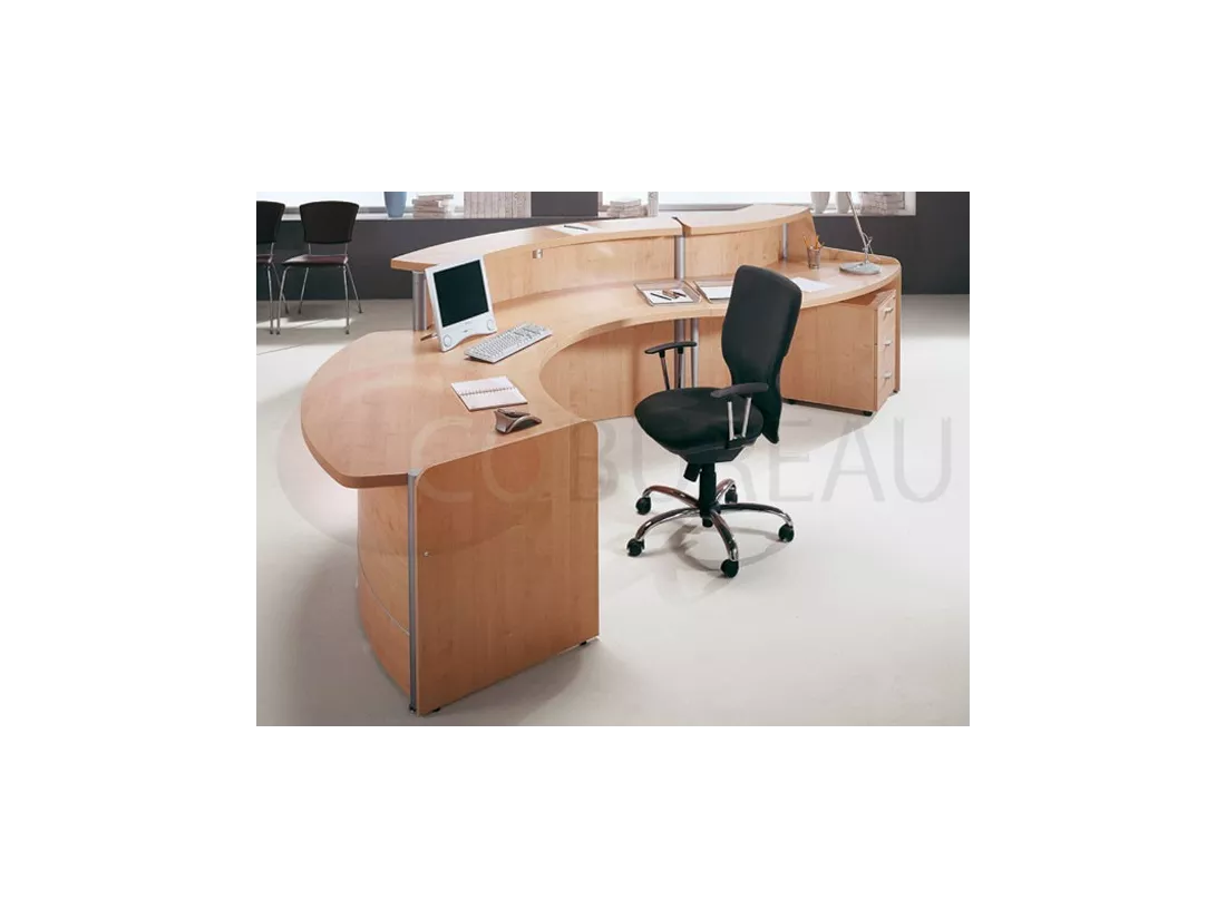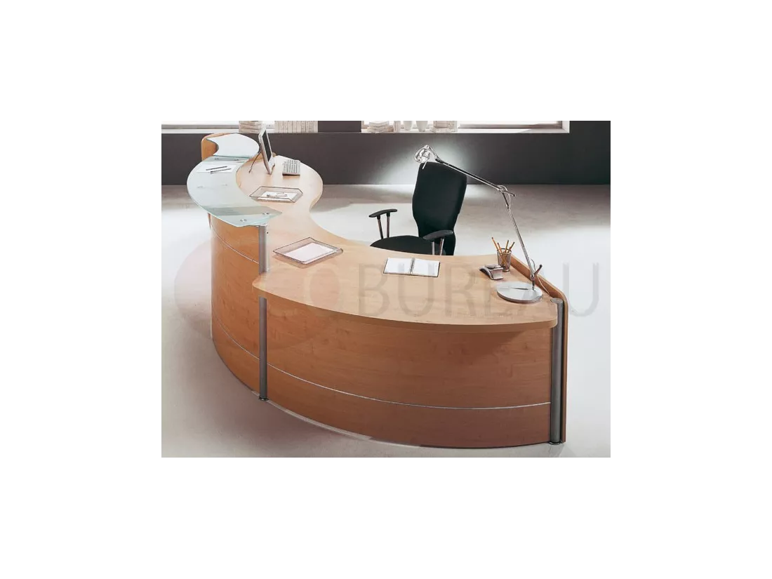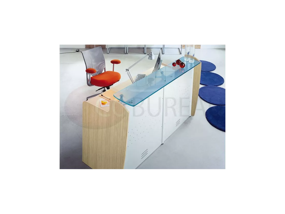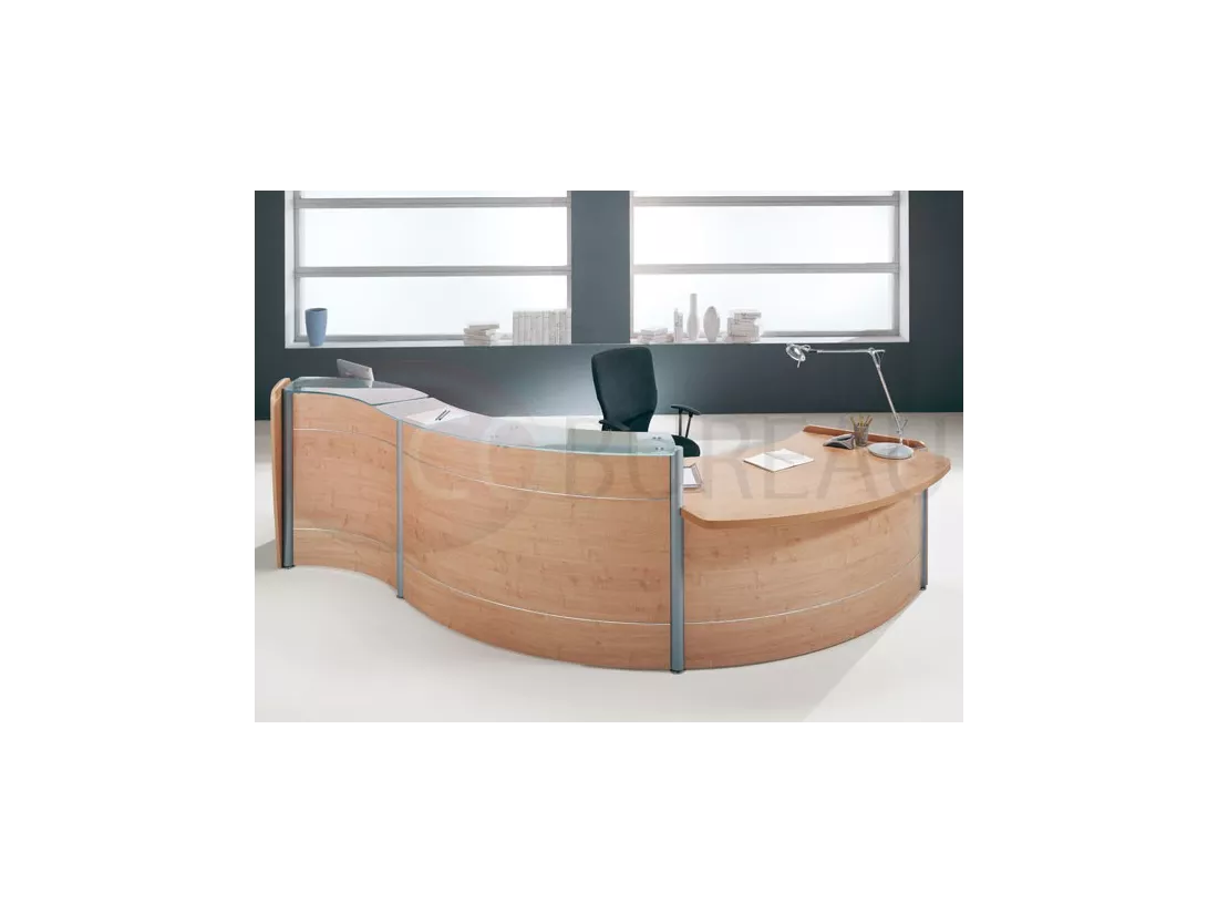 Top réception linéaires et courbes en mélaminé ép. 38mm, ou en verre trempé dépoli ép. 12mm.