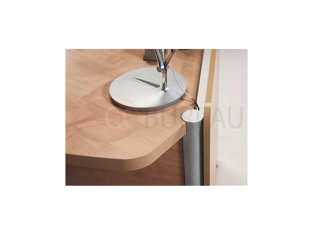 Poteaux verticaux en tube d’acier diamètre 60mm, avec plaque supérieure pour soutien console, côtés d’habillage en mélaminé ép. 18mm.