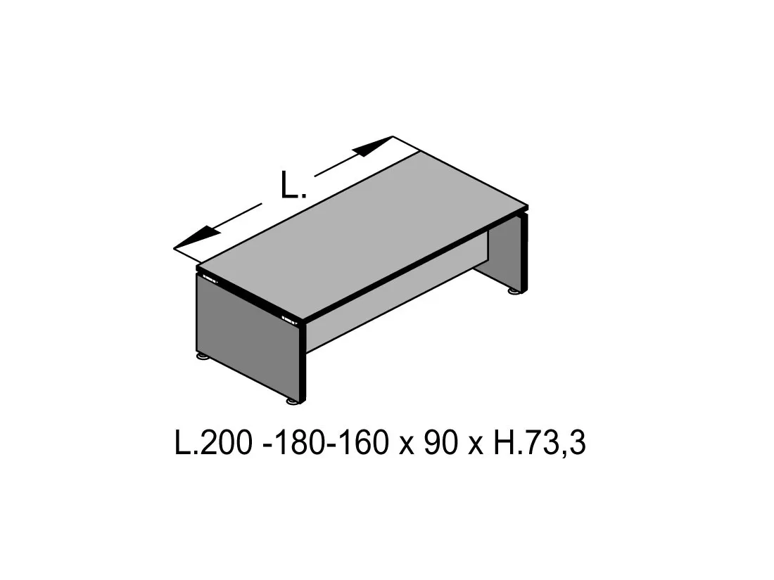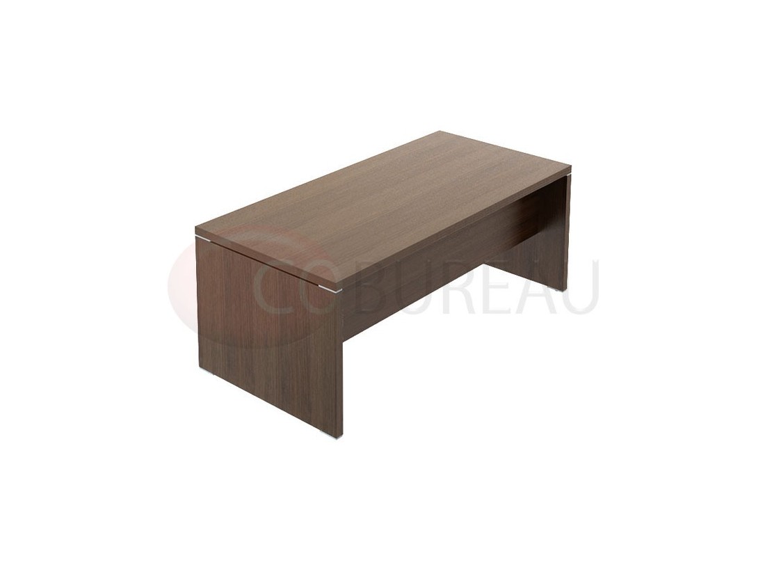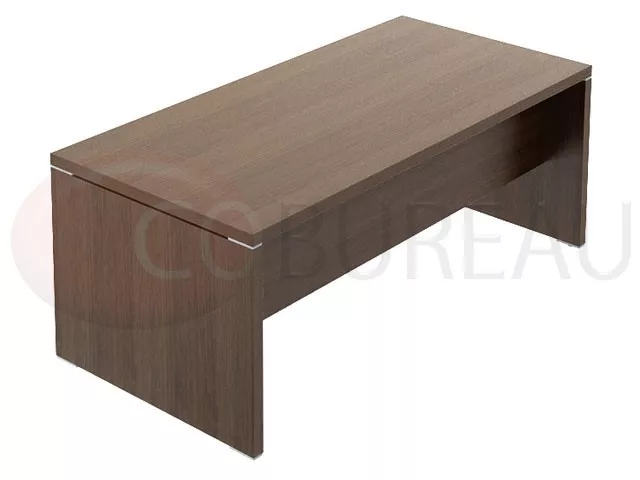 Bureau avec plateau droit, épaisseur 38 mm en panneaux MDF haute densité finition mélaminé 3 décors au choix : wengé, chêne claire, noyer ou pommier, chants droits en ABS antichocs 3 mm assortie au plateau.