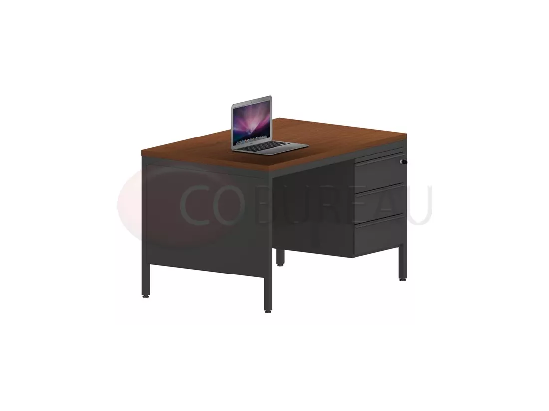 Bureau demi-ministre 120 cm métal caisson 3 tiroirs