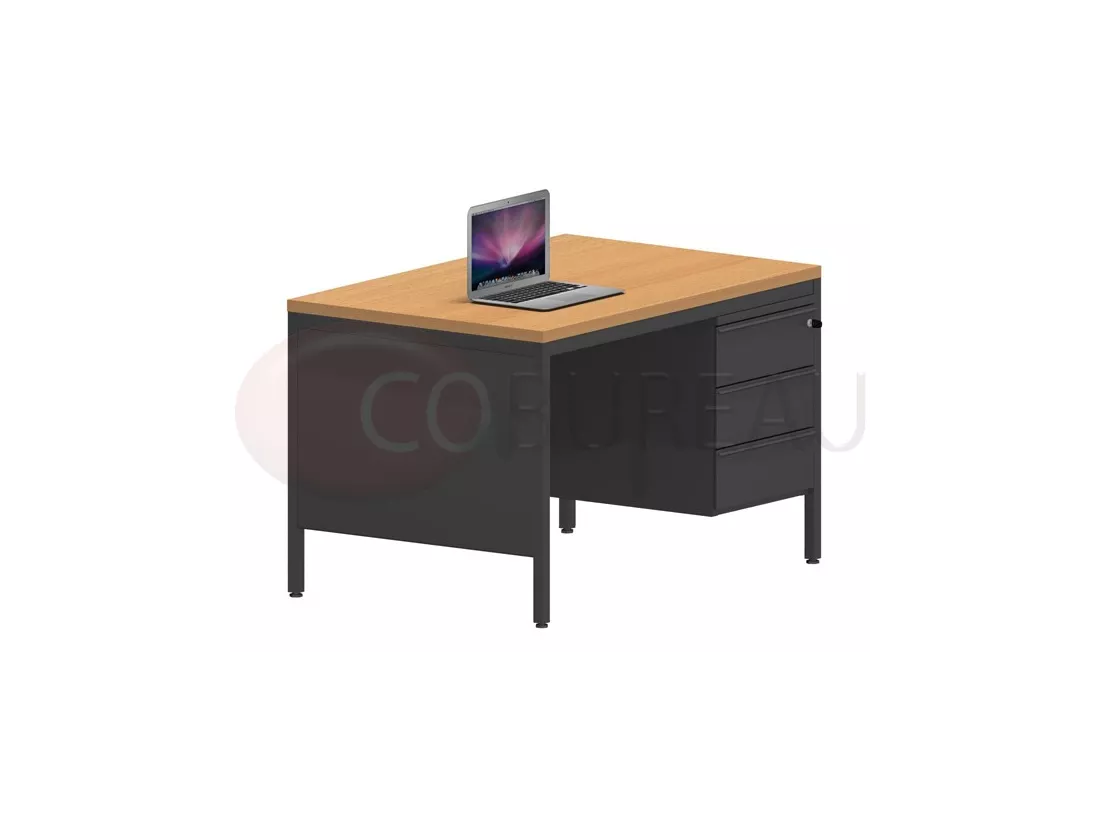 Bureau demi-ministre 120 cm métal caisson fixe 3 tiroirs