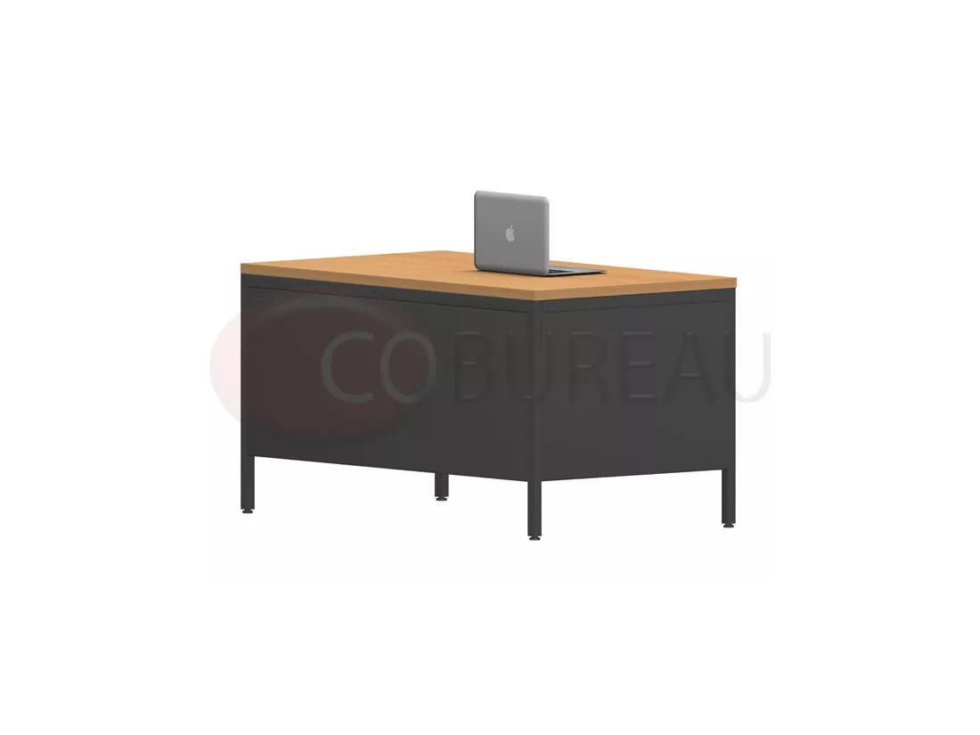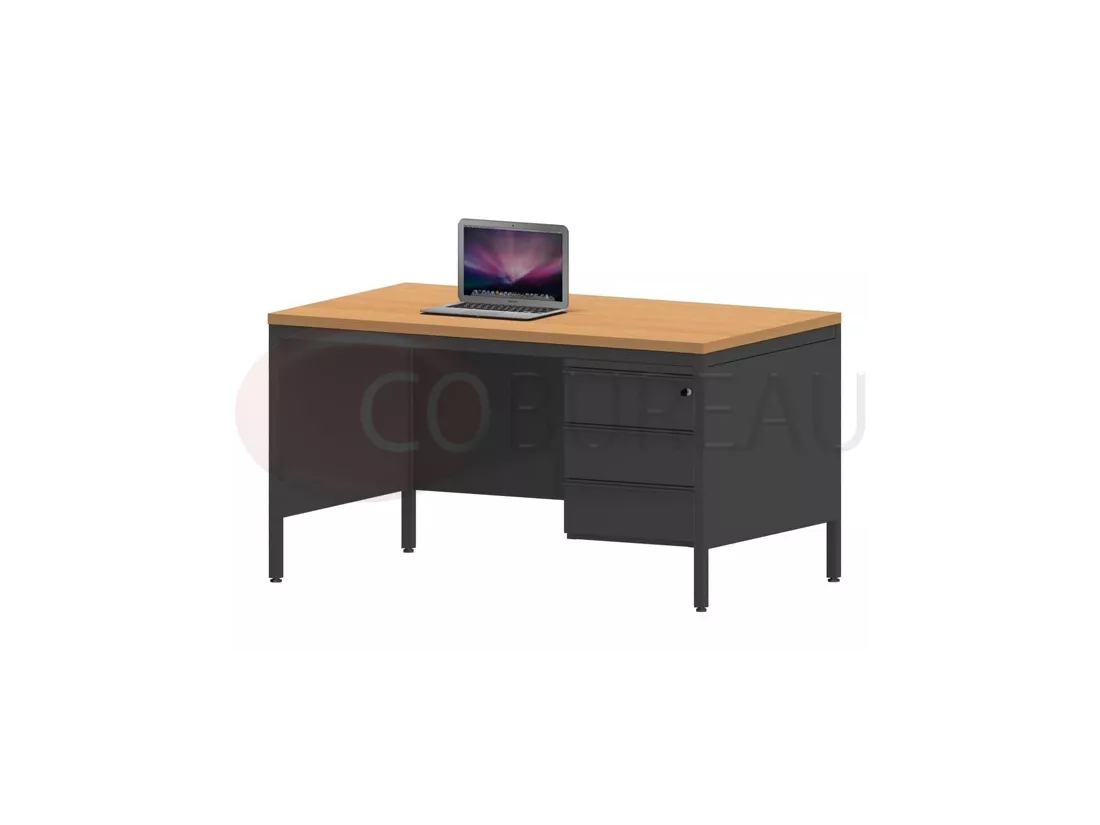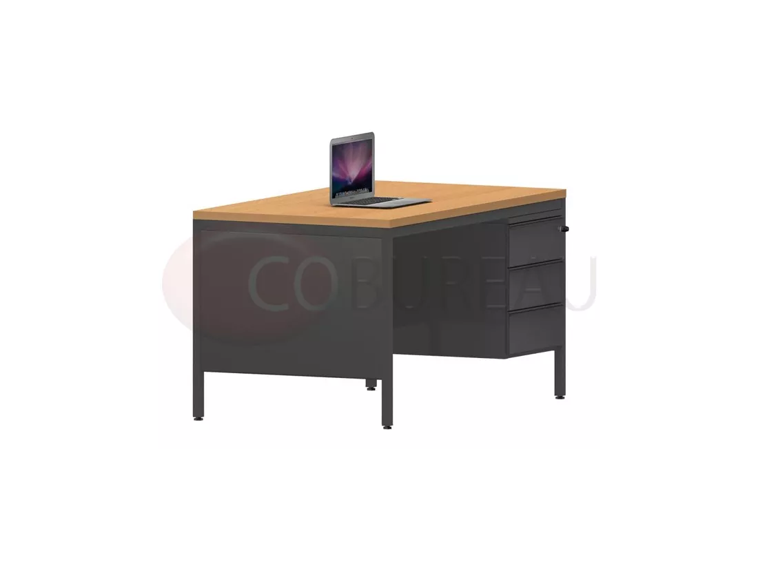 Bureau demi-ministre 140 cm métal caisson 3 tiroirs plateau hêtre