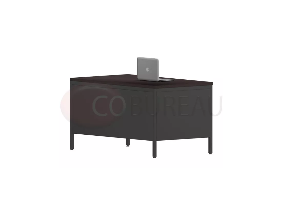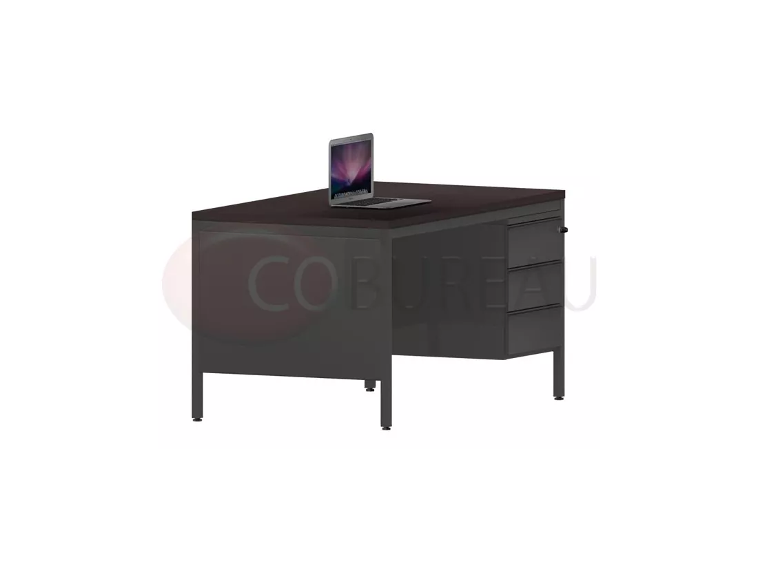 Bureau demi-ministre 140 cm métal caisson 3 tiroirs plateau wengué