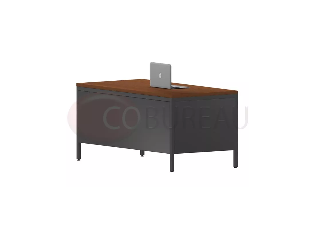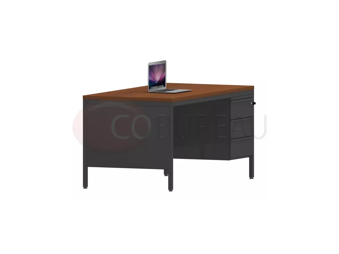 Bureau demi-ministre 160 cm métal caisson 3 tiroirs plateau noyer