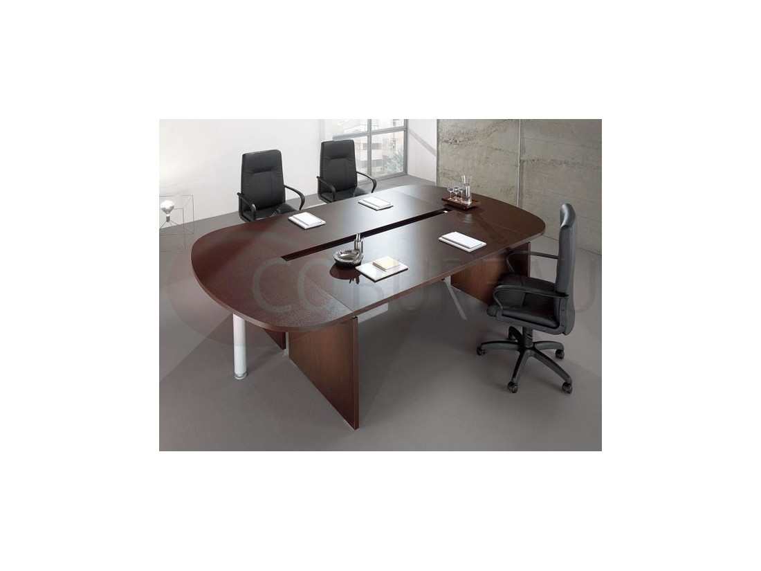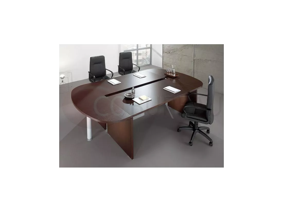 Structures pieds panneaux en mélaminé ép. 25mm et vdf ép. 18mm, pieds métal fixes et poutre pour passage des câbles.