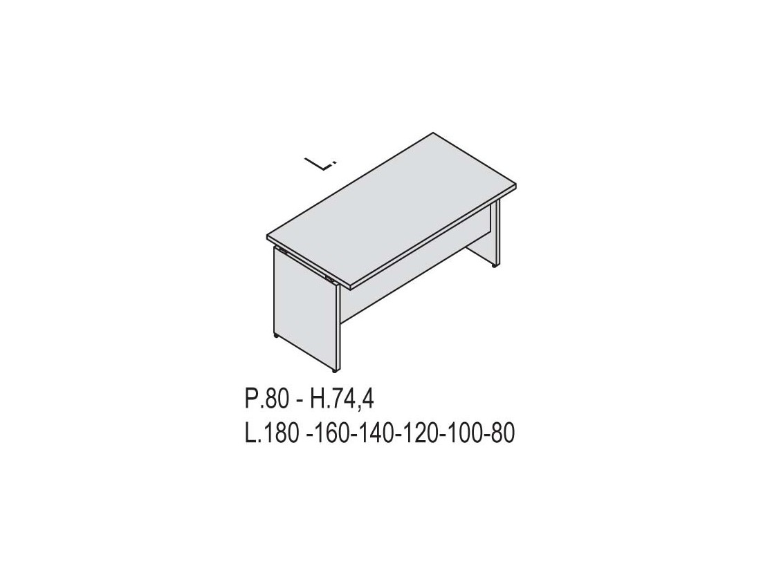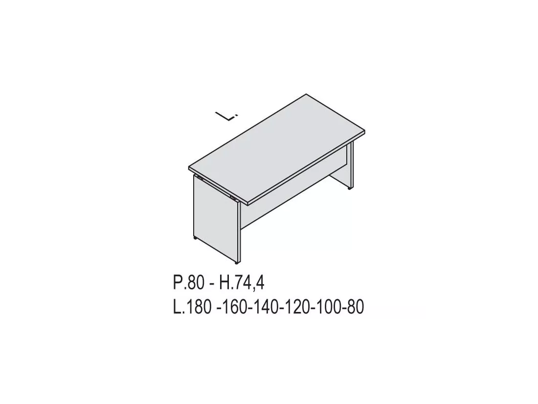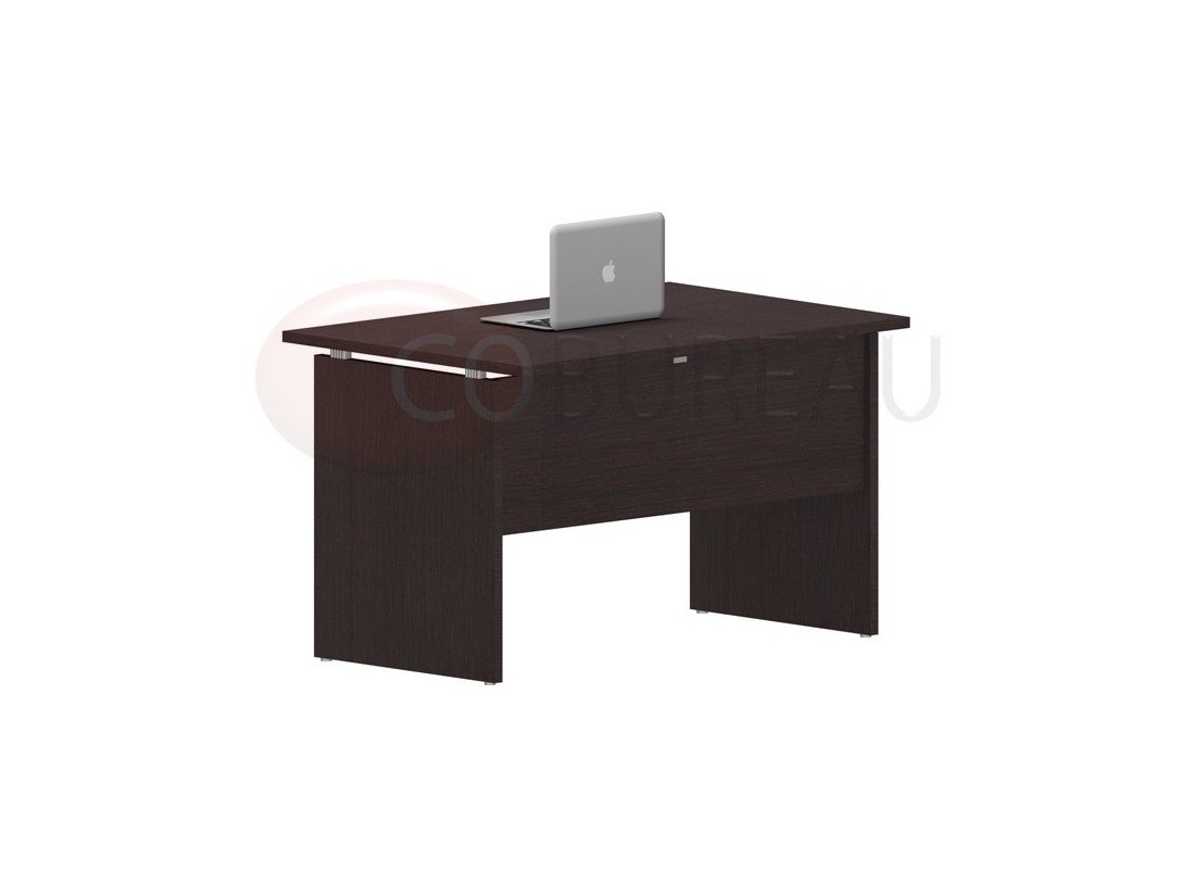 Bureau avec plateau droit, épaisseur 25 mm en panneaux de particules haute densité finition mélaminé 2 décors au choix : wengé ou cerisier, chants droits en ABS antichocs 3 mm assortie au plateau.