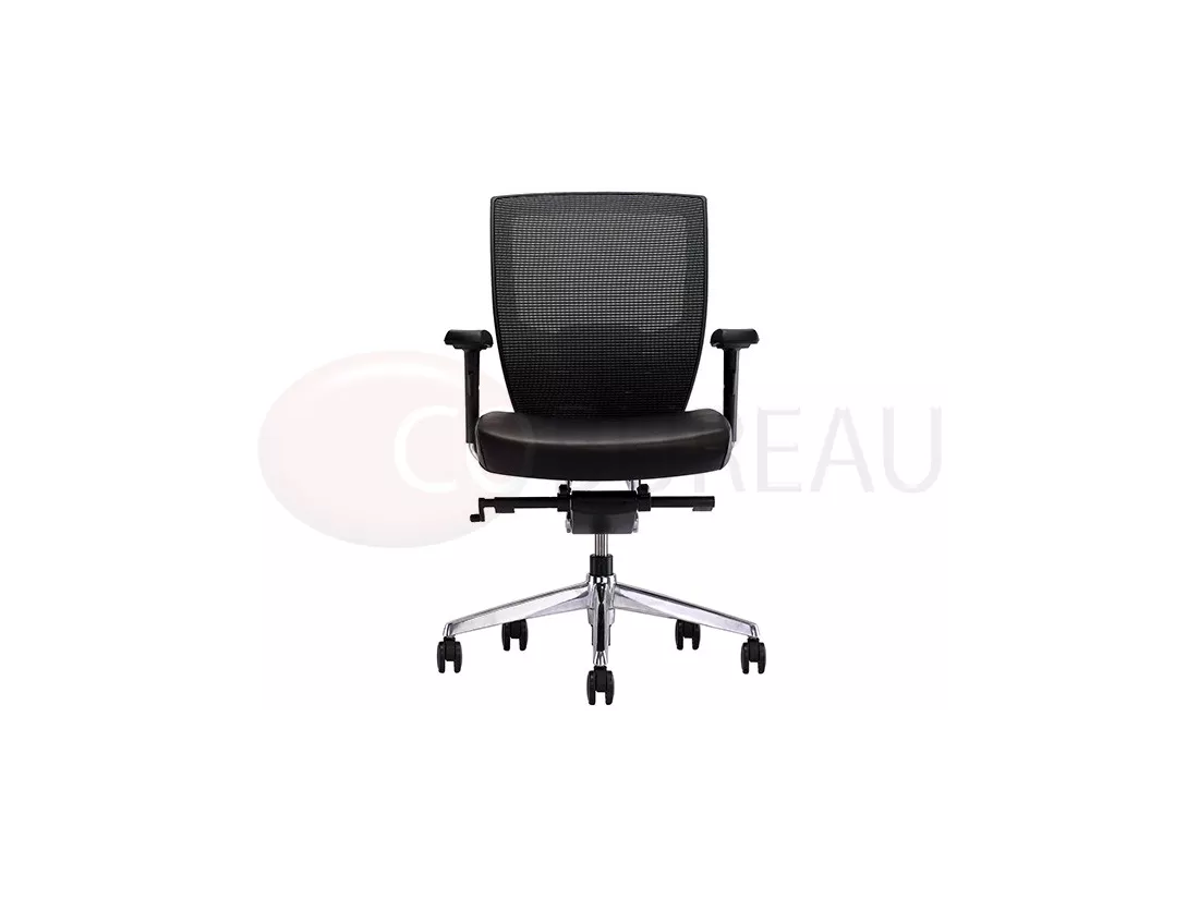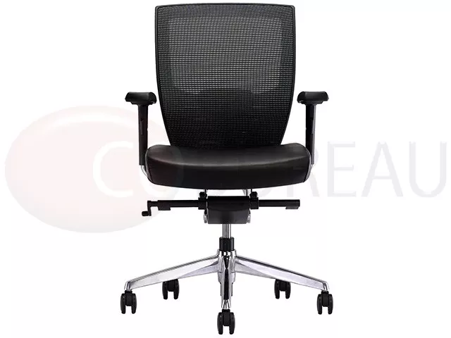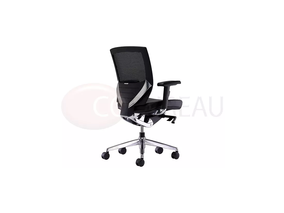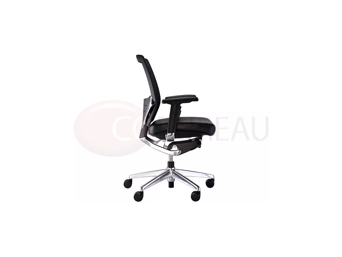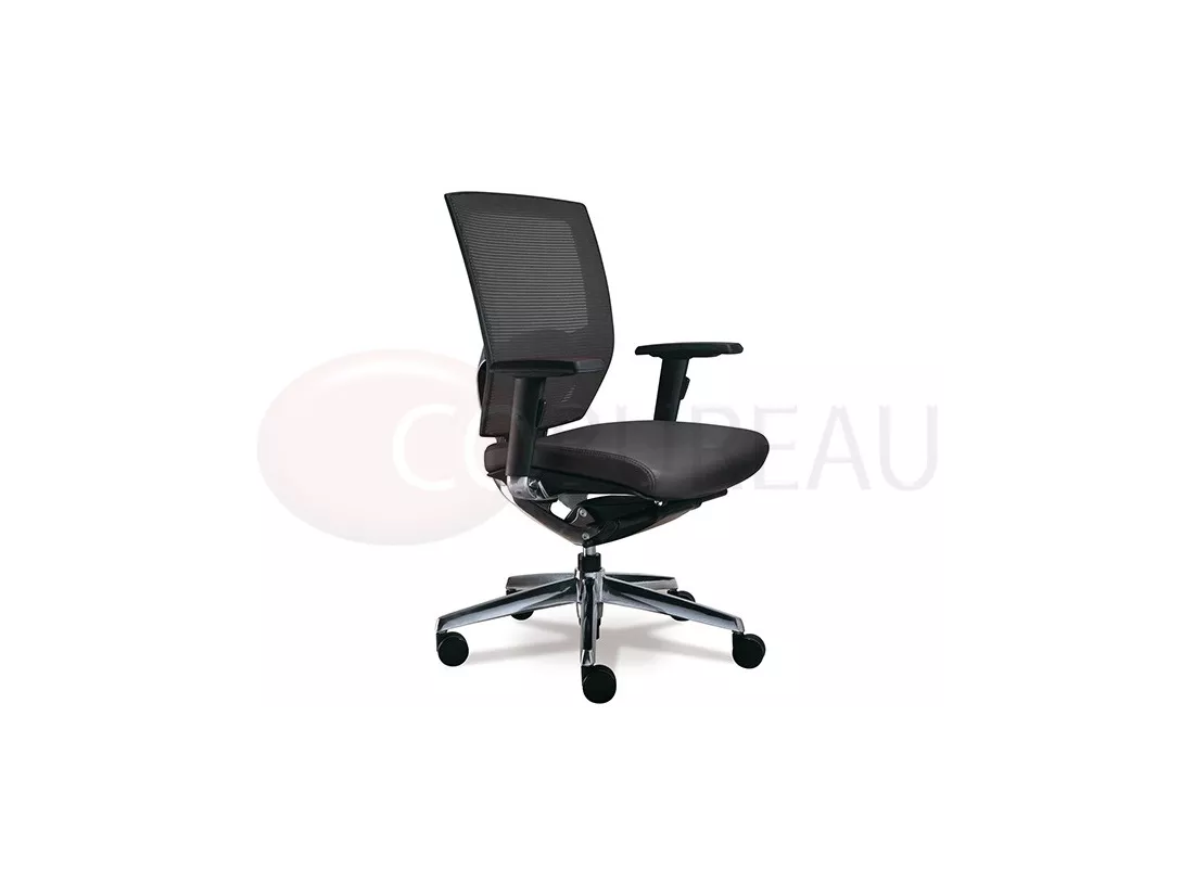 dossier moyenne en maille, accoudoirs polyuréthane réglables en hauteur, largeur et en orientation.