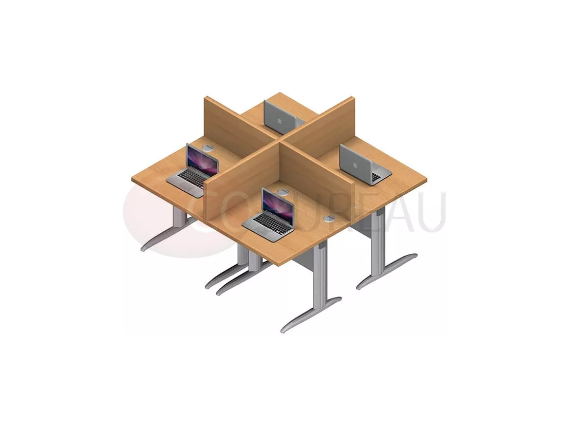 Composé de 4 postes identiques en largeur 80 cm, assemblés face à face.