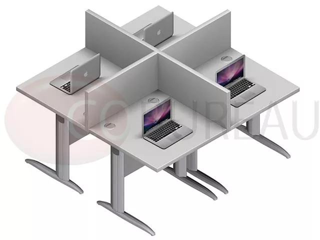 Marguerite Composé de 4 postes identiques en largeur 80 cm, Plateaux mélaminés antireflets épaisseur 30 mm.