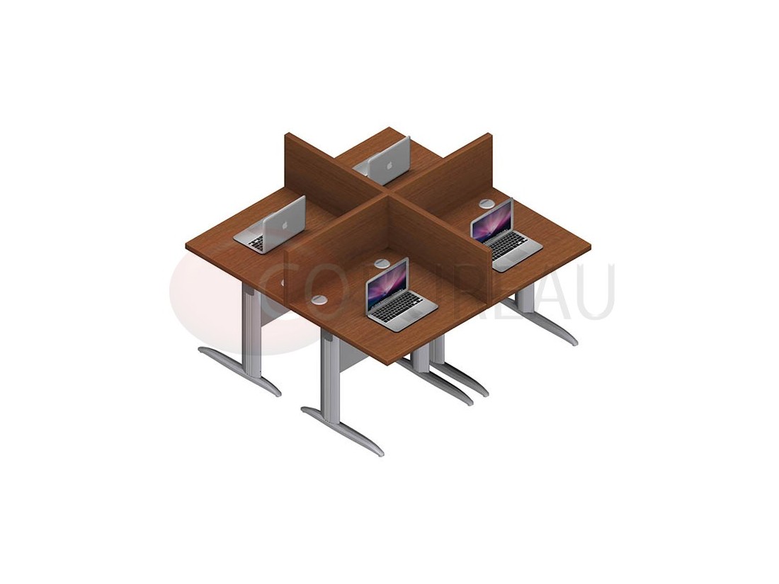Marguerite Composé de 4 postes identiques en largeur 80 cm, Plateaux mélaminés antireflets épaisseur 30 mm.
