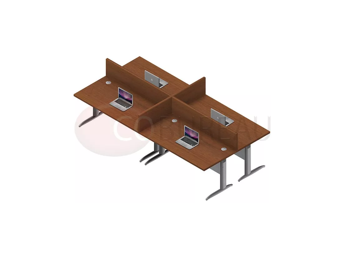 Composé de 4 postes identiques en largeur 160 cm, assemblés face à face.