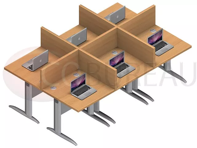 Marguerite Composé de 6 postes identiques en largeur 80 cm, Plateaux mélaminés antireflets épaisseur 30 mm.