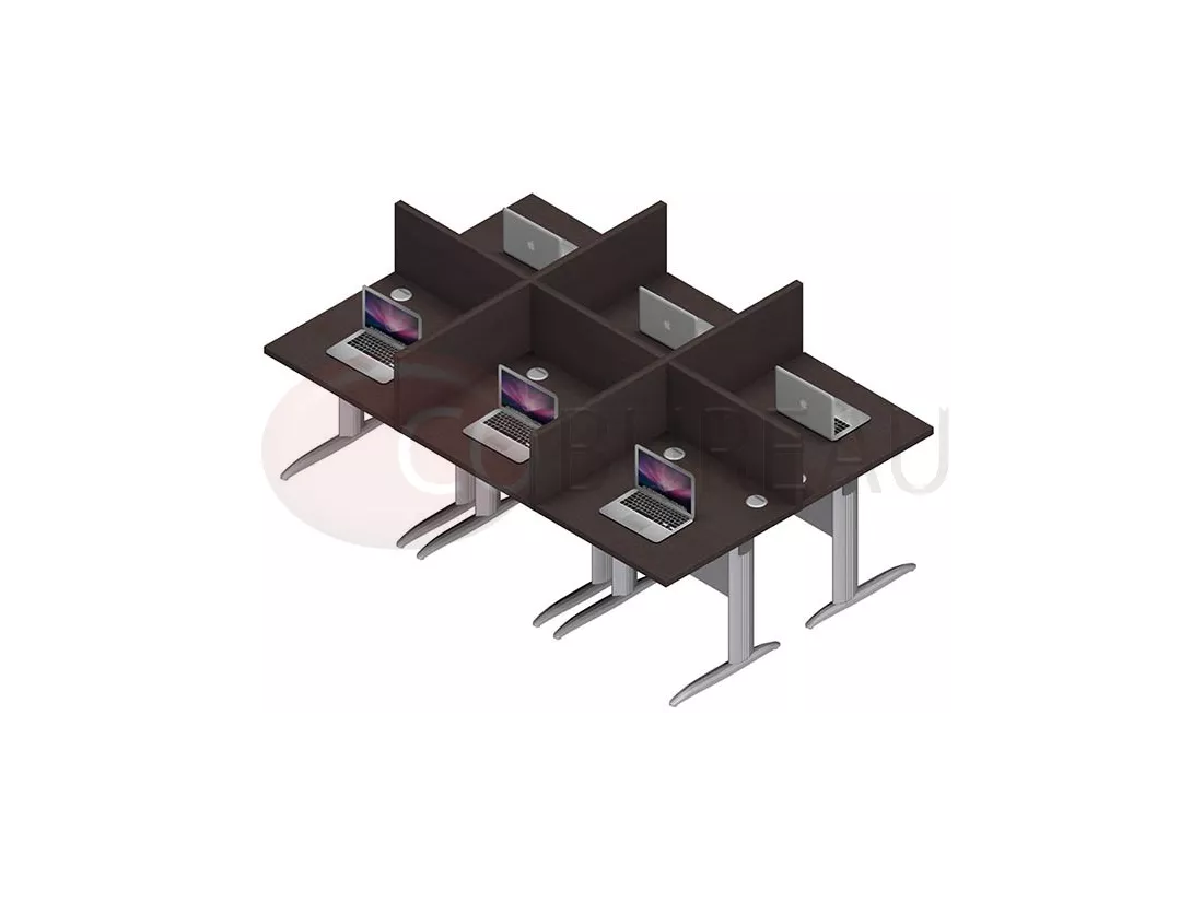 Marguerite Composé de 6 postes identiques en largeur 80 cm, Plateaux mélaminés antireflets épaisseur 30 mm.
