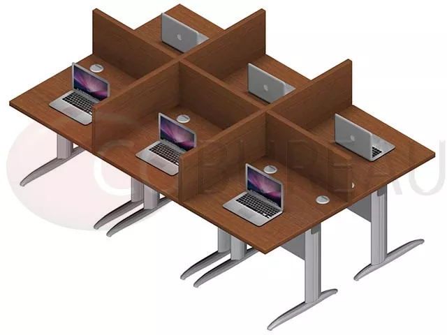 Marguerite Composé de 6 postes identiques en largeur 80 cm, Plateaux mélaminés antireflets épaisseur 30 mm.