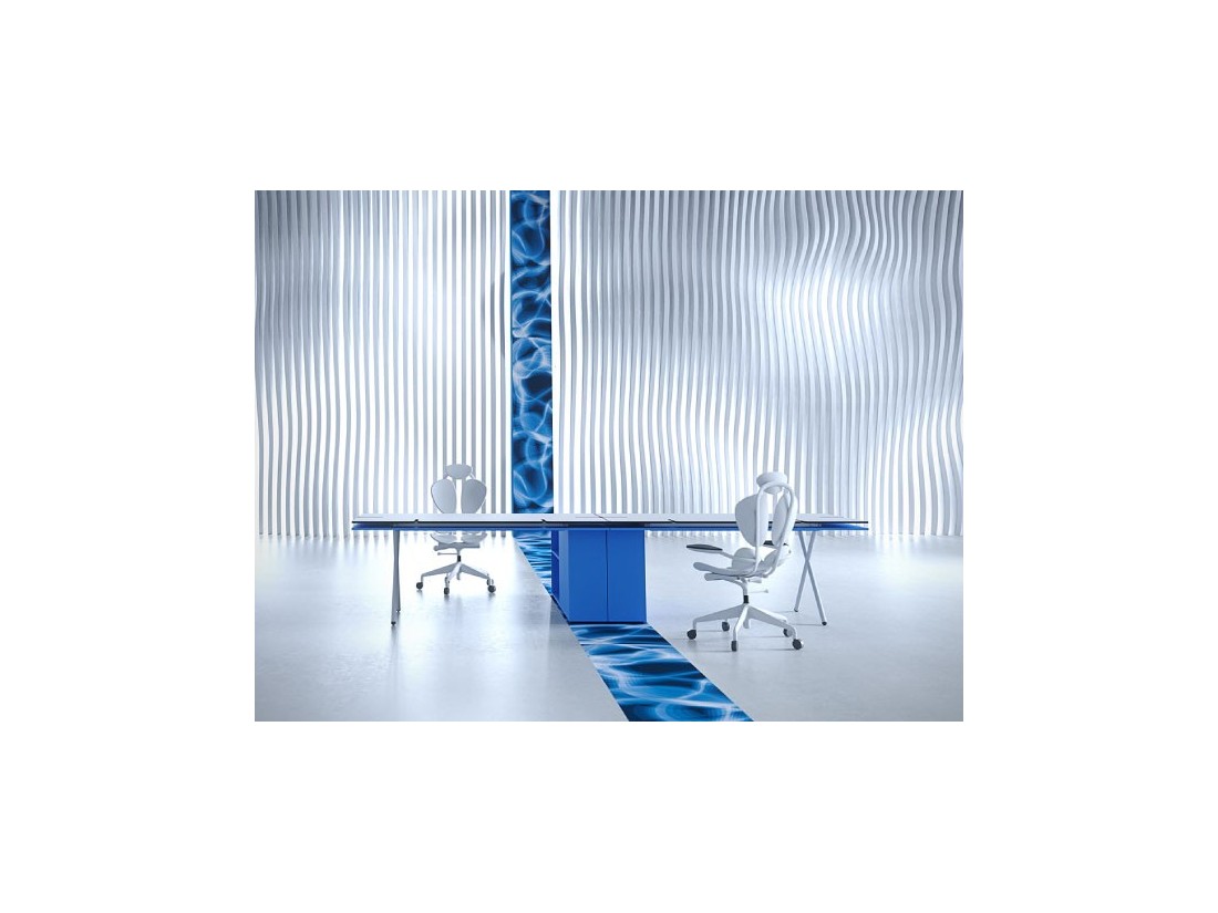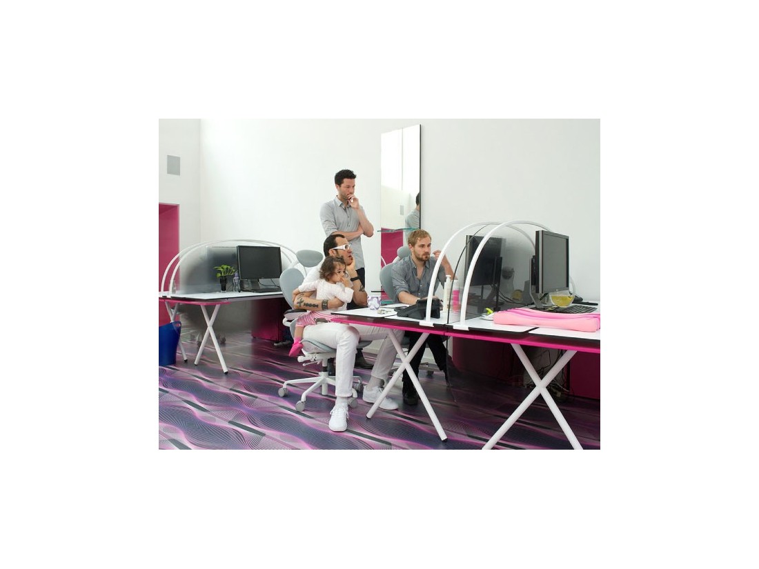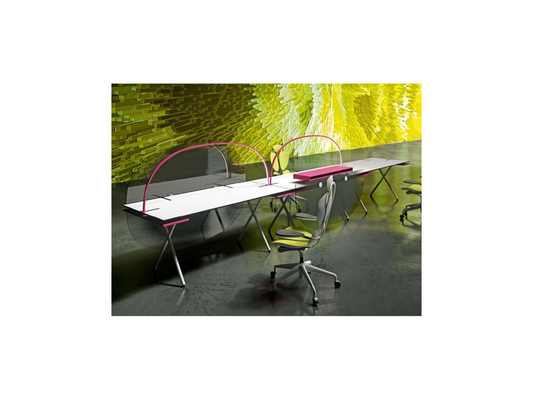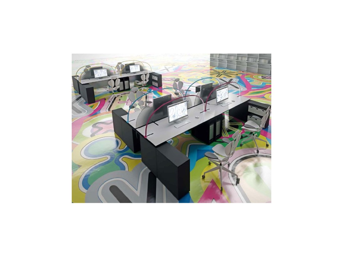 L’espace du bureau devrait être confortable et donner inspiration comme dans sa propre maison, mais avec moins de distractions. Un bureau devrait sauvegarder l’esprit de liberté, personnalisation et partage au même temps. Touches de couleur, pop art work et simples séparateurs peuvent créer un lieu privé en ligne avec l’espace habité. Les petites pièces sont dépassés. Personne aime vivre dans une cage, confiné dans 4 mq avec des photos tristes accrochés sur un mur sale, je crois que les espaces fluides, propres et lumineux promeuvent une vie active au bureau, et un ambiance de ce genre aide à travailler mieux et avec plus de détermination. Ma collection pour Newform Ufficio incarne ce besoin.