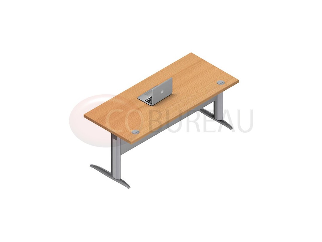 Surface de travail ergonomique. Intègre les espaces bureau, informatique et retour. Piétement " L" métal aluminium.