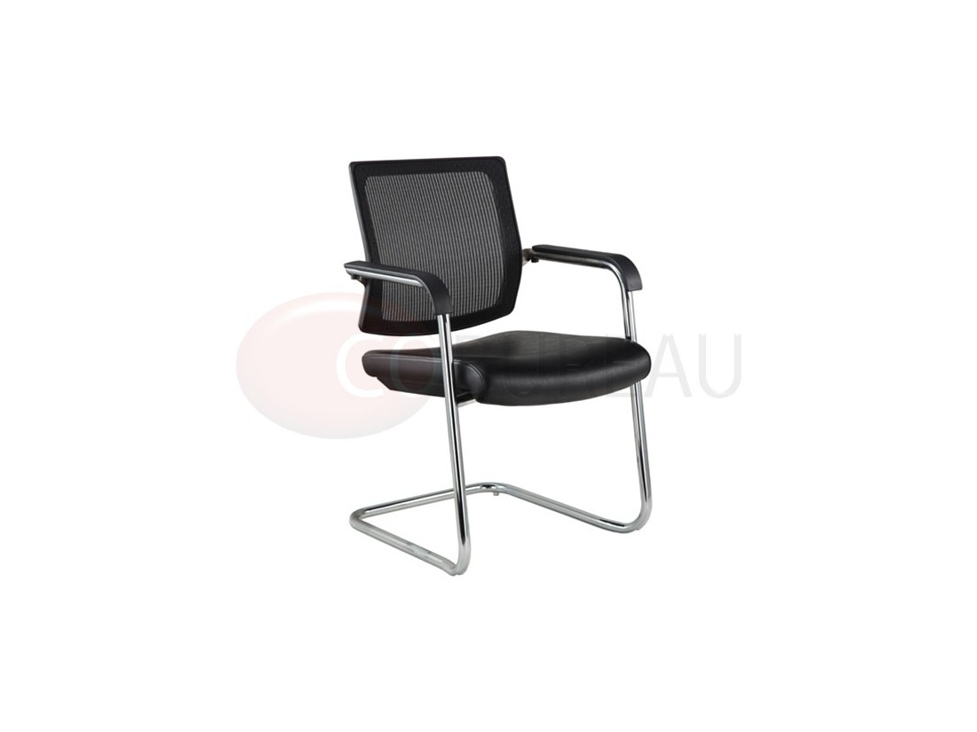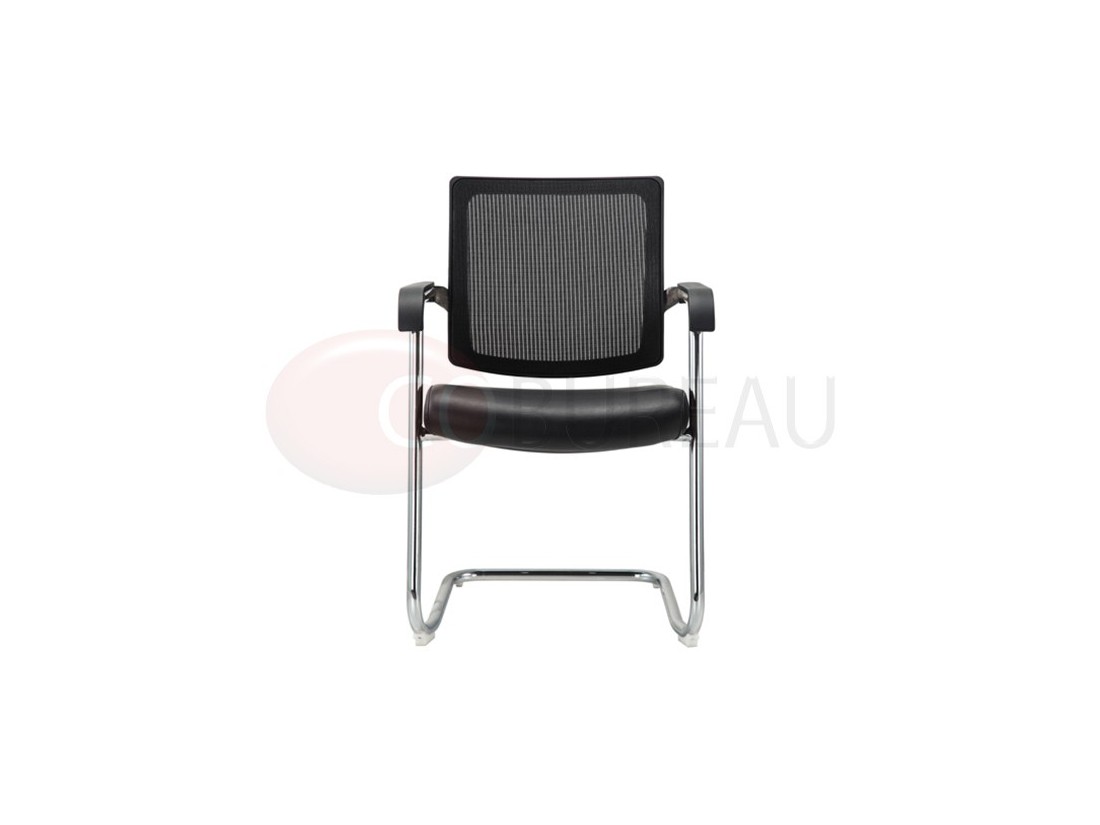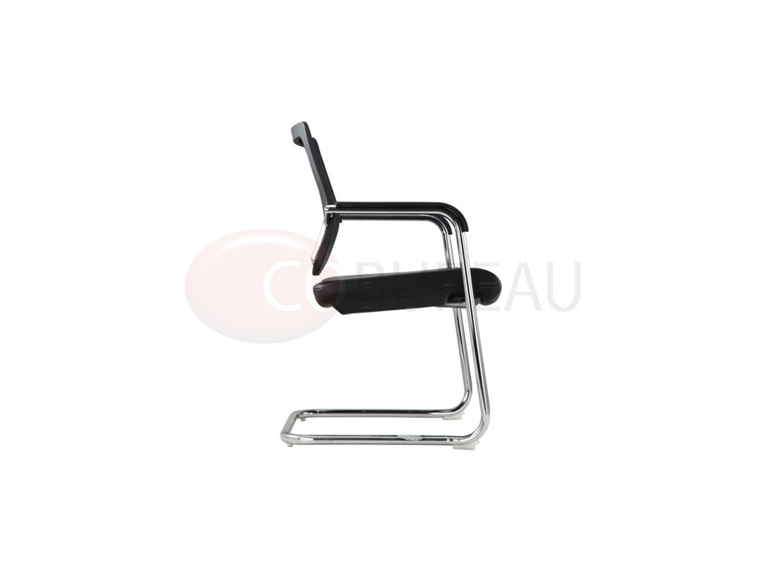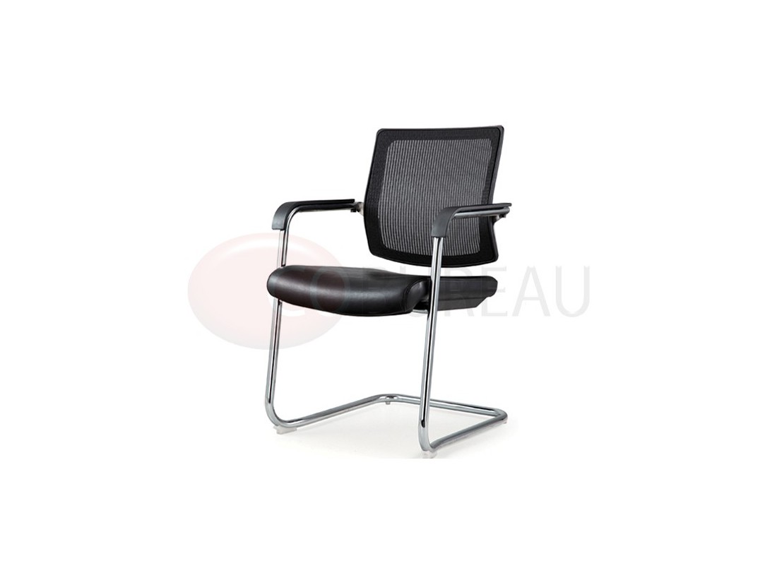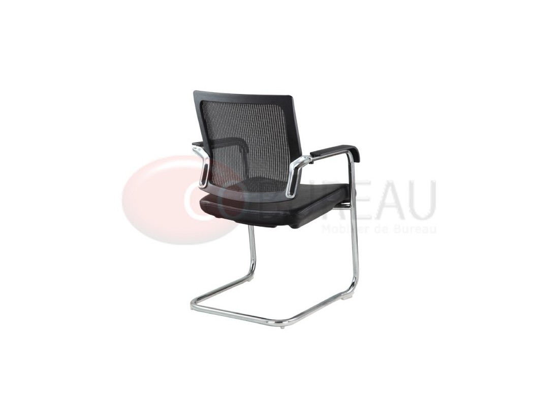 Son design épuré grâce à un pieds luge métal finition chrome avec patins, revêtu de manchette en polypropylène noir confère un aspect aérien et léger. Le dossier souple en maille qui s’adapte parfaitement à la courbure du dos. La maille limite la transpiration et laisse passer l’air pour plus de confort. l'assise est rembourrés avec de la mousse moulée haute densité garnis de simili cuir.