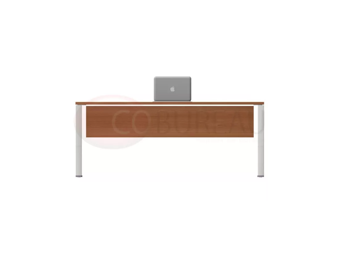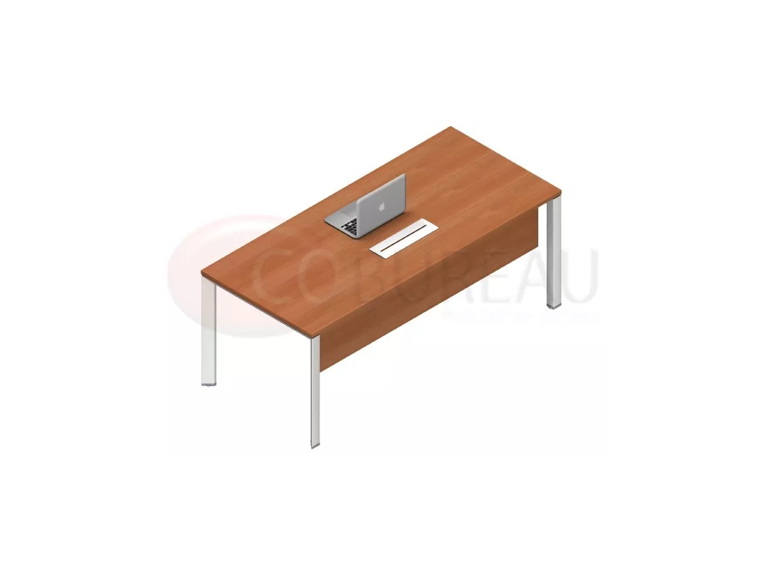 Surface de travail ergonomique. Intègre les espaces bureau, informatique et retour. Piétement " L" métal aluminium.