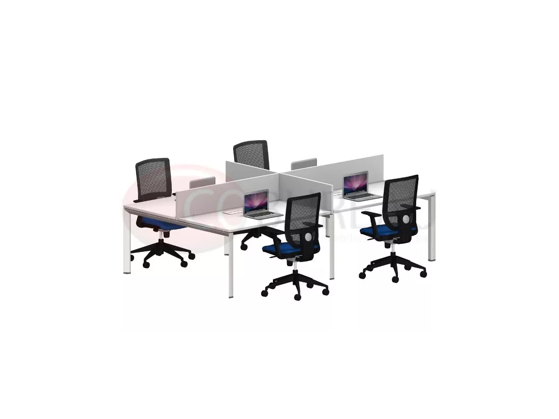 Marguerite Composé de 4 postes identiques en largeur 80 cm, Plateaux mélaminés antireflets épaisseur 30 mm.