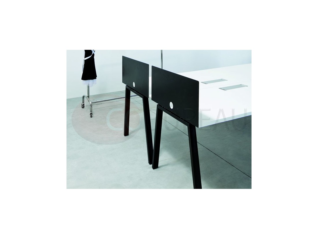 Structures pieds panneaux en mélaminé ép. 25mm et vdf ép. 18mm, pieds métal en 4 typologies, pieds chevalet en « A » fixes et réglables, pieds en « L » fixes, pieds « K » fixes, pieds en « T » réglables.