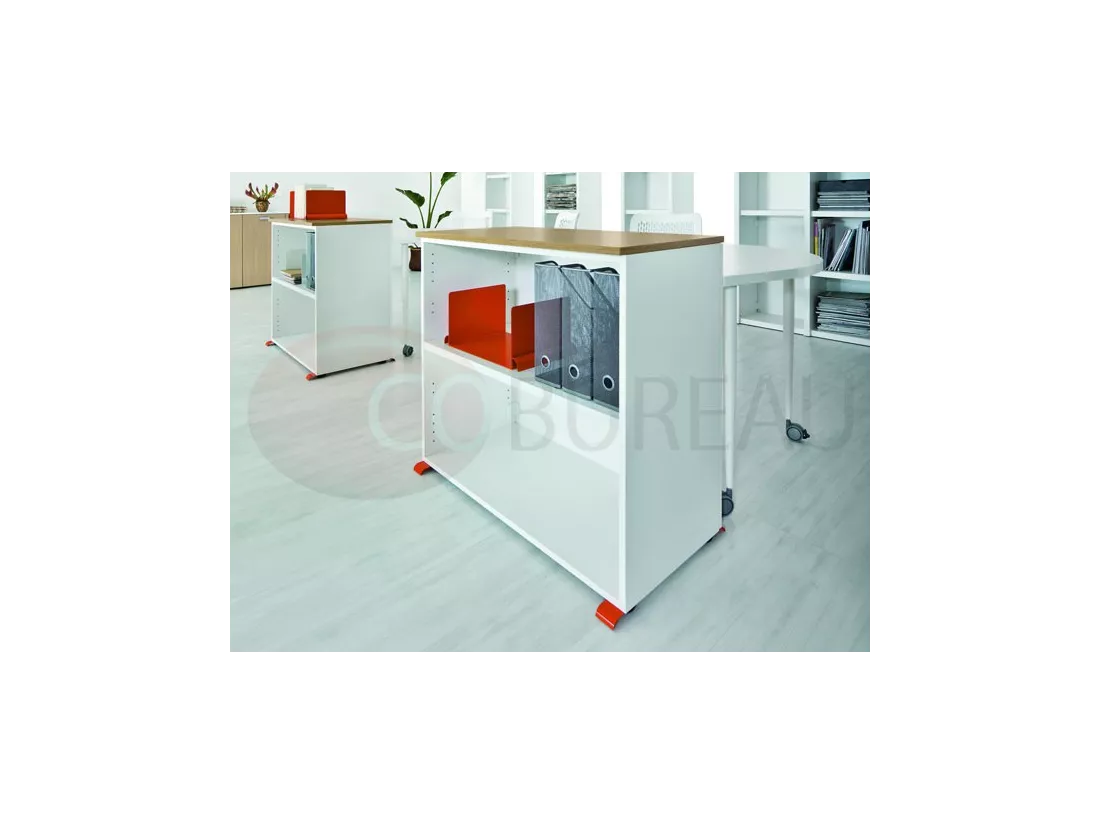 Caissons suspendus, sur roulettes et porteurs, corps et façades en mélaminé ép. 18mm.