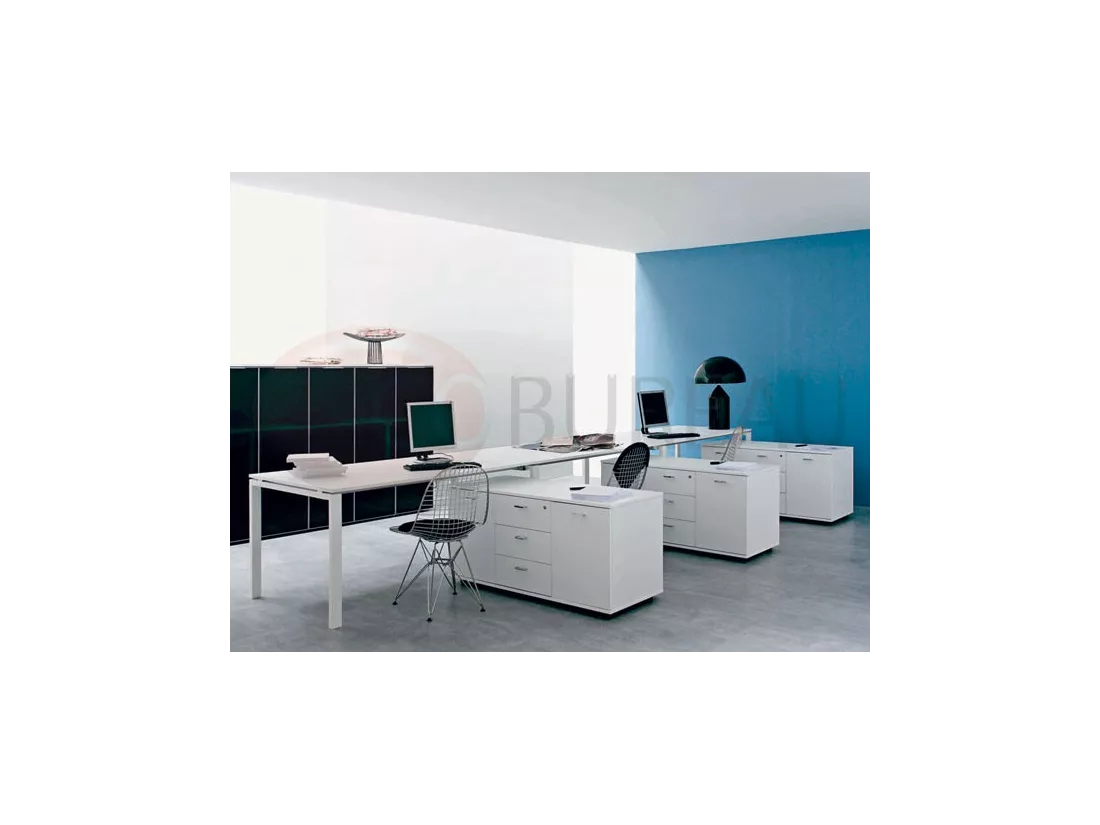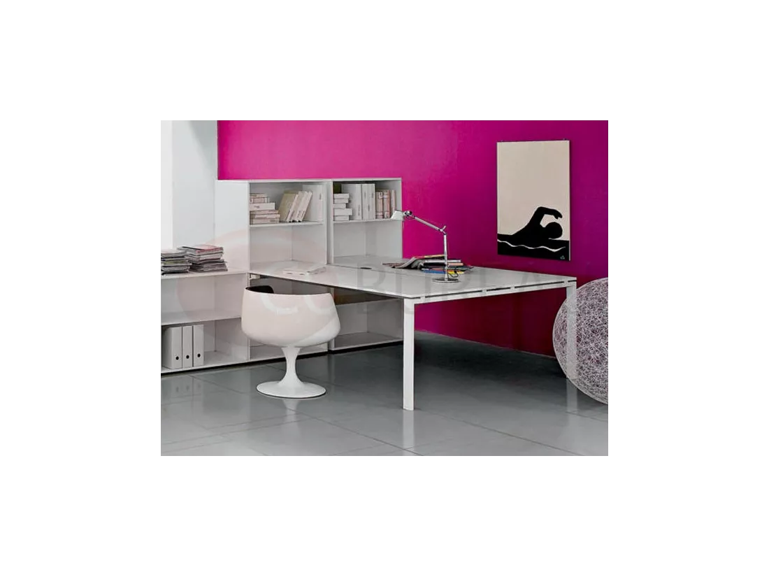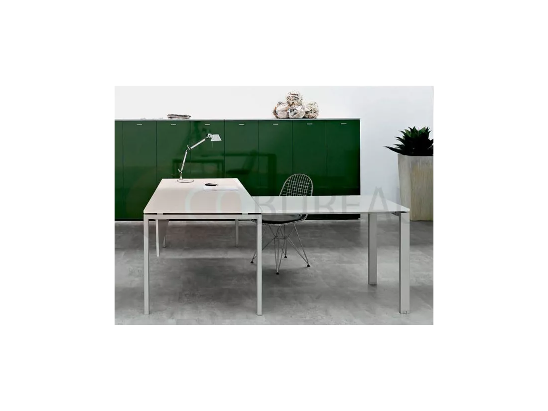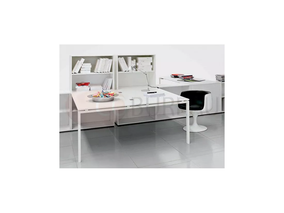 Plateaux de travail, en mélaminé ép. 18mm, ou en verre trempé retro-laqué ép. 10mm.