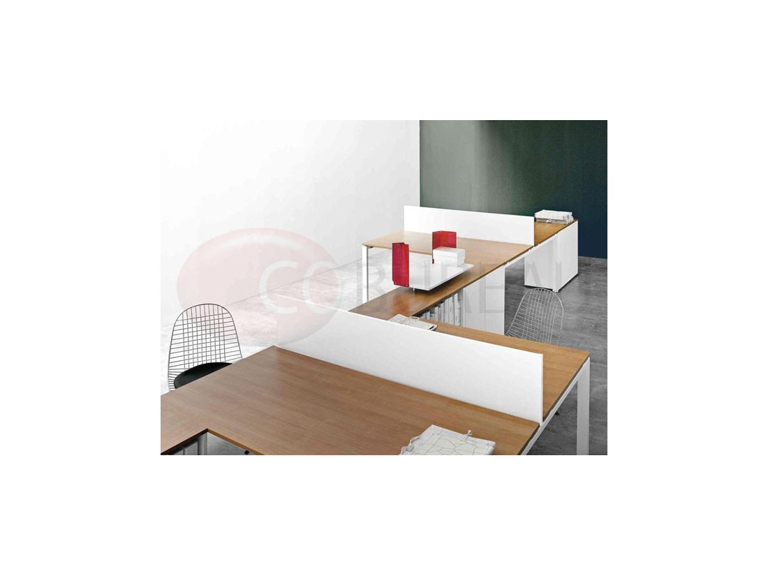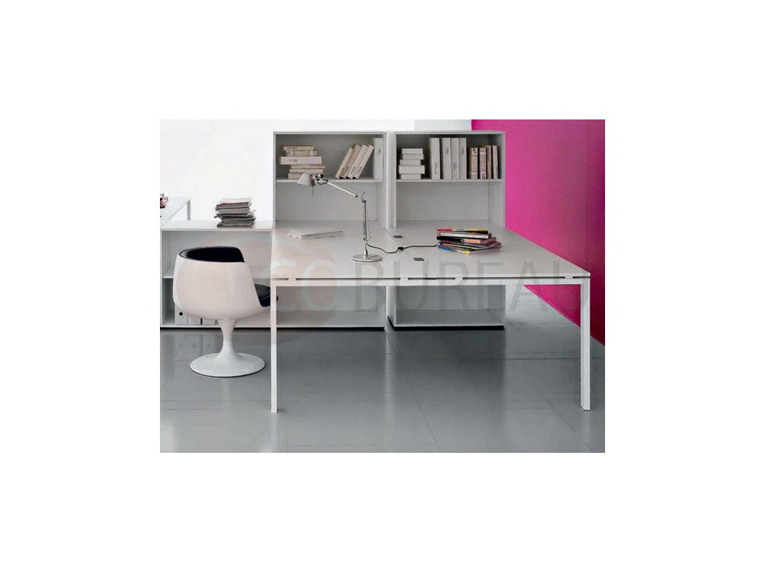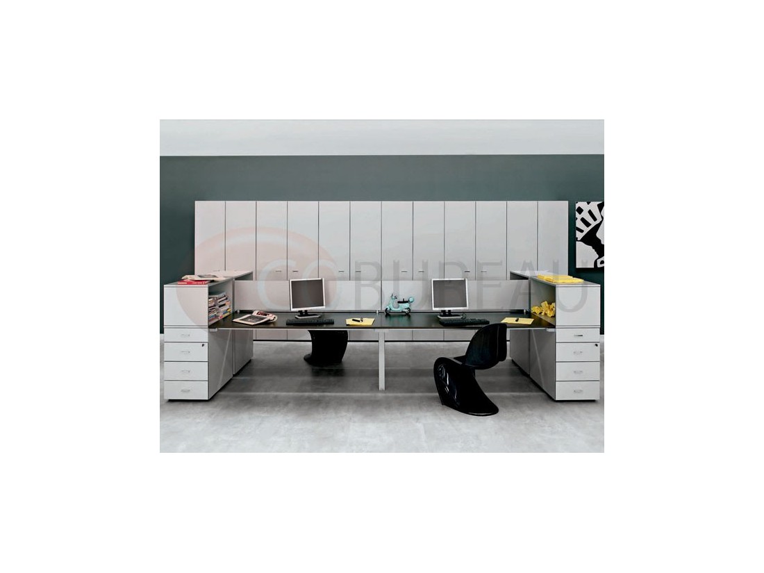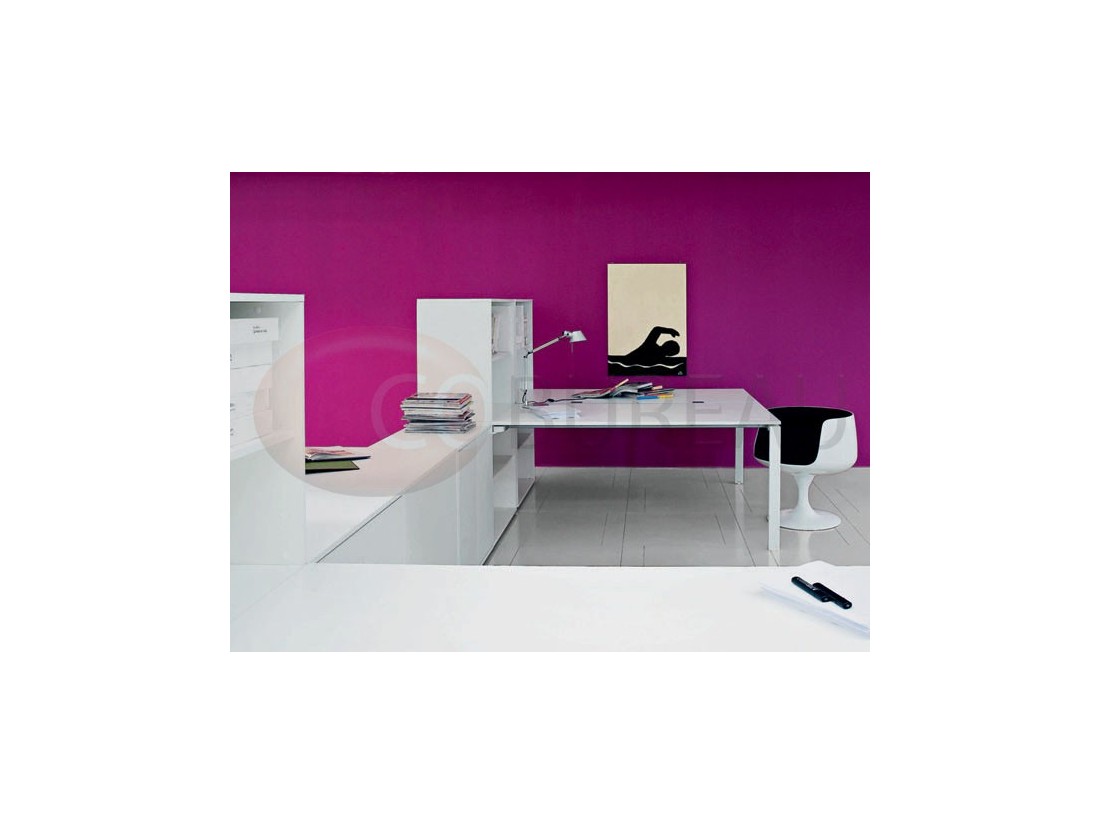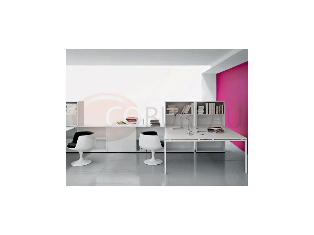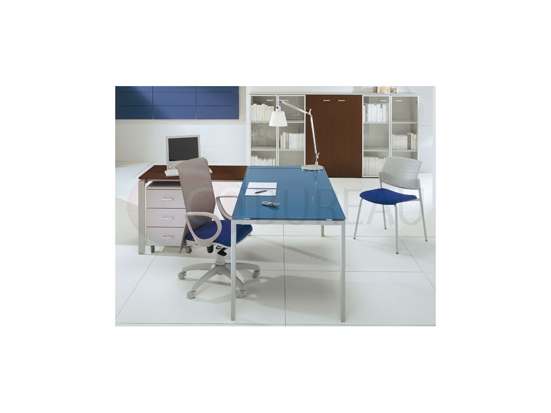 Plateaux de travail, en mélaminé ép. 18mm, ou en verre trempé retro-laqué ép. 10mm.
