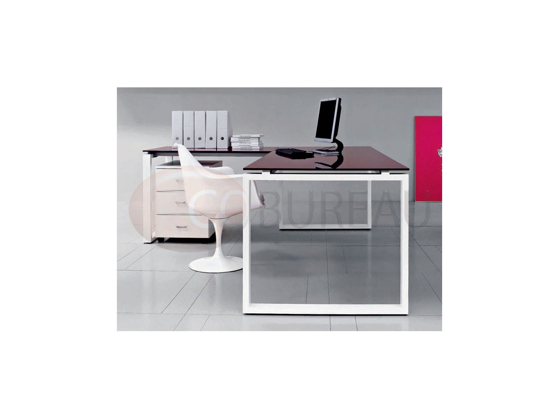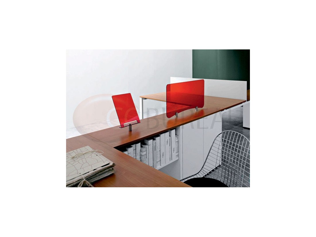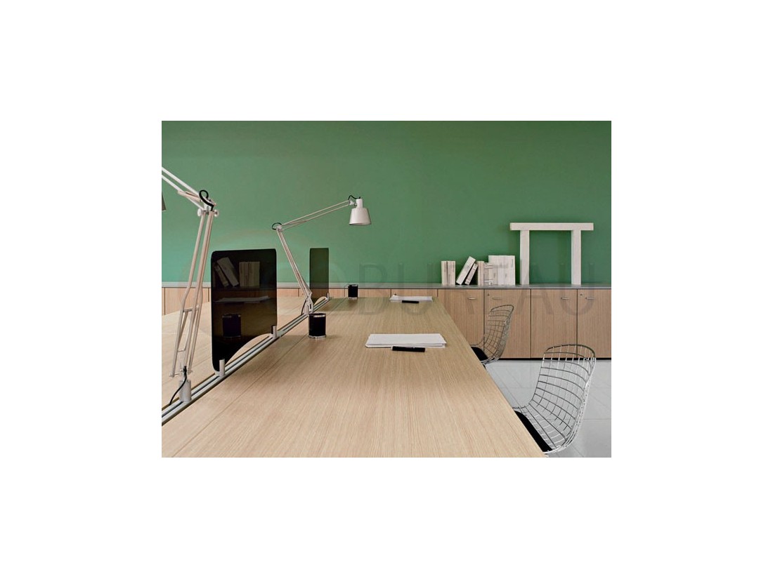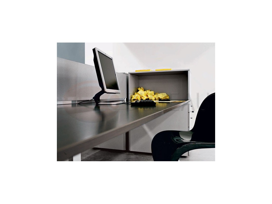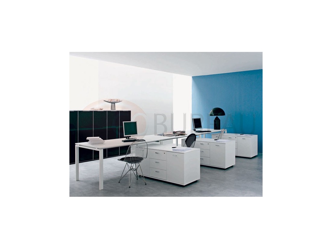 Plateaux de travail, en mélaminé ép. 18mm, ou en verre trempé retro-laqué ép. 10mm.