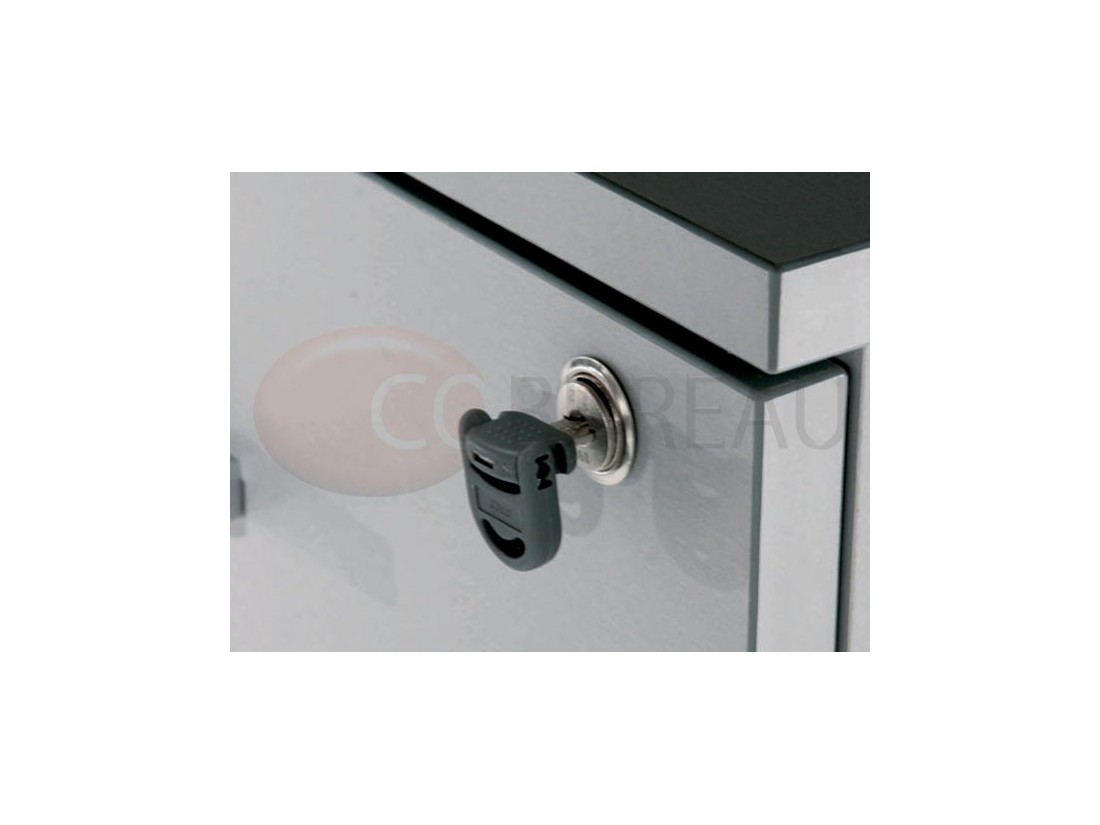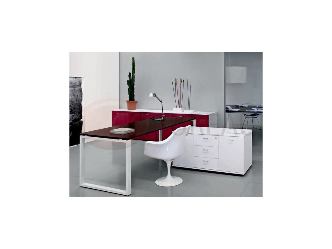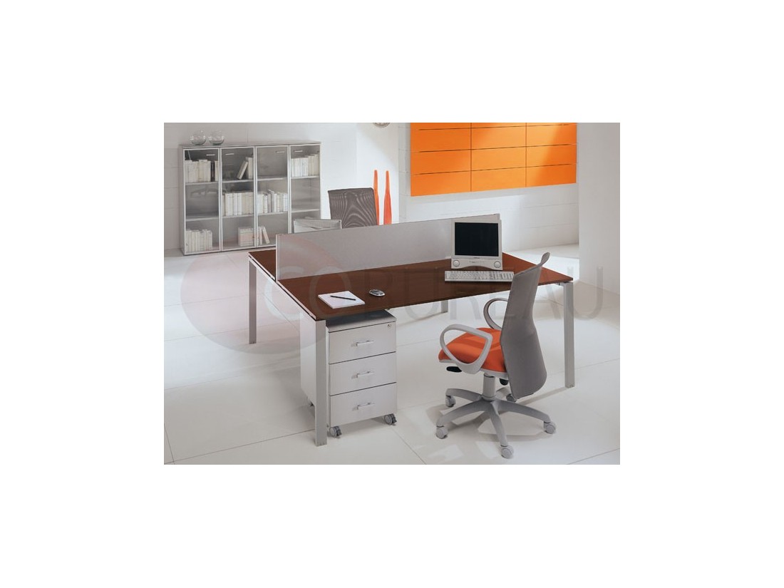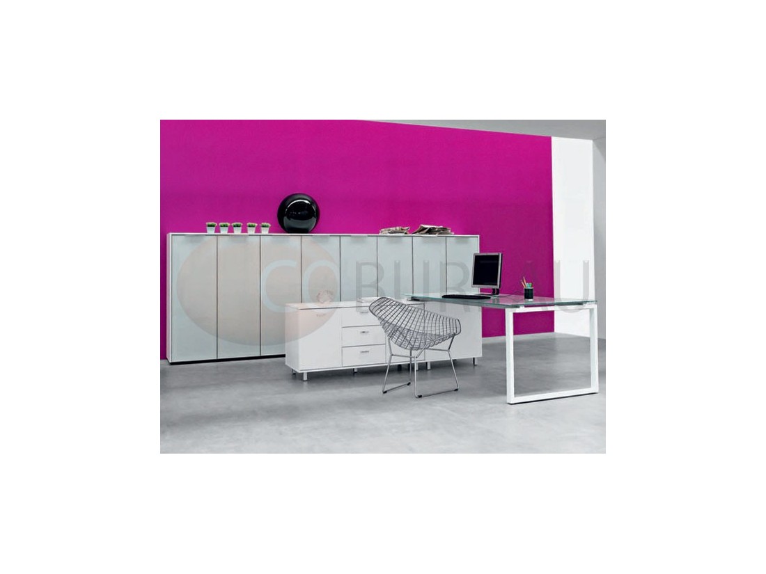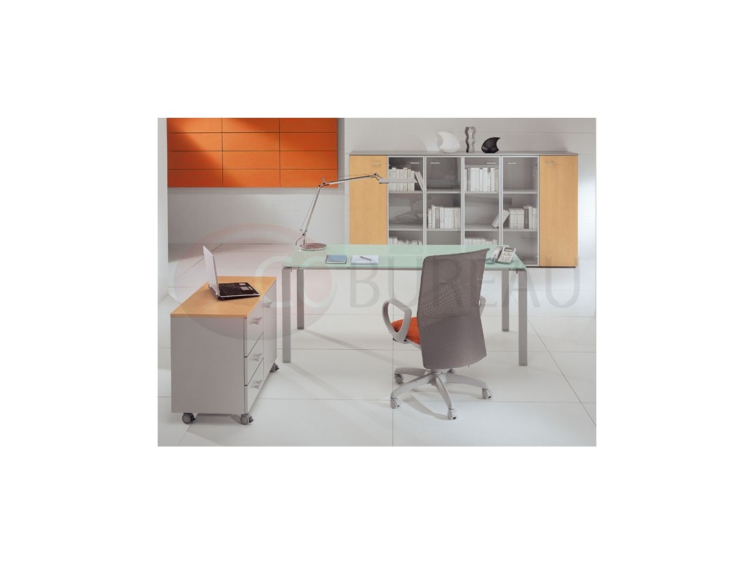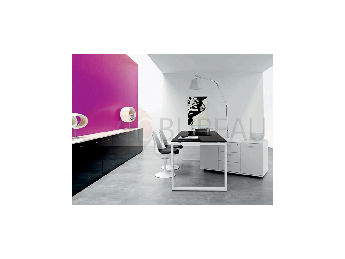 Plateaux de travail, en mélaminé ép. 18mm, ou en verre trempé retro-laqué ép. 10mm.