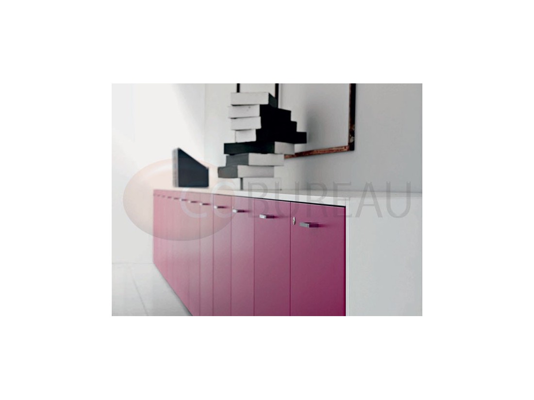 Armoires en mélaminé corps et dos ép. 18mm, tablettes ép. 25mm, top et côtés de finition en mélaminé ép. 18mm