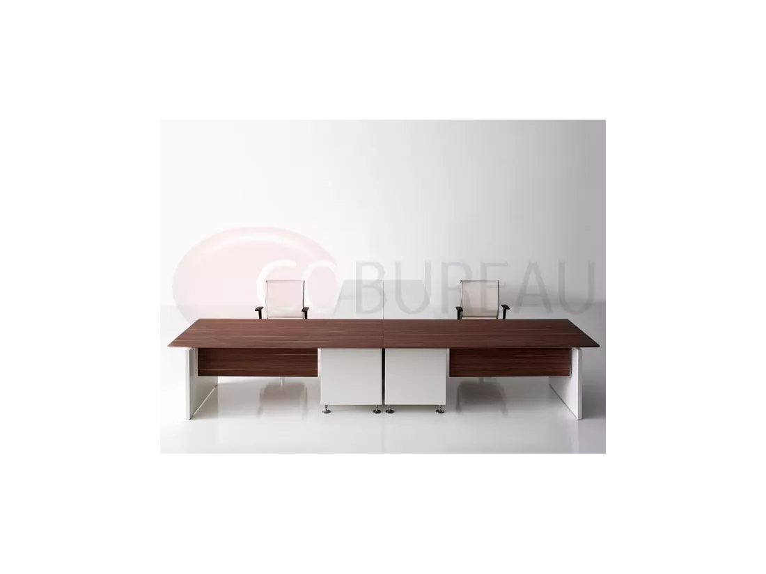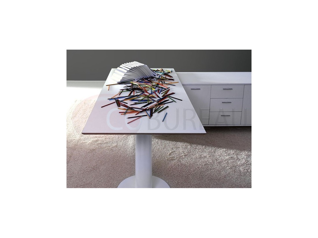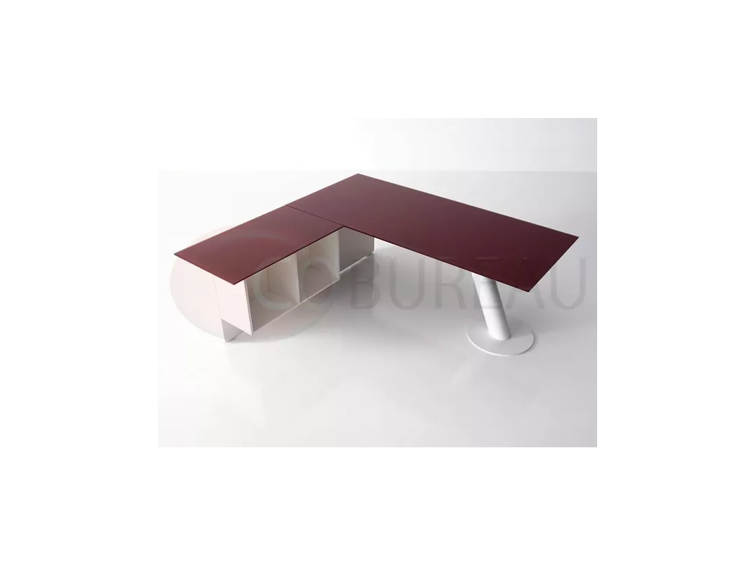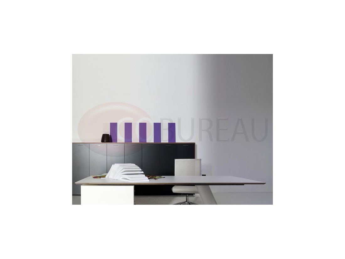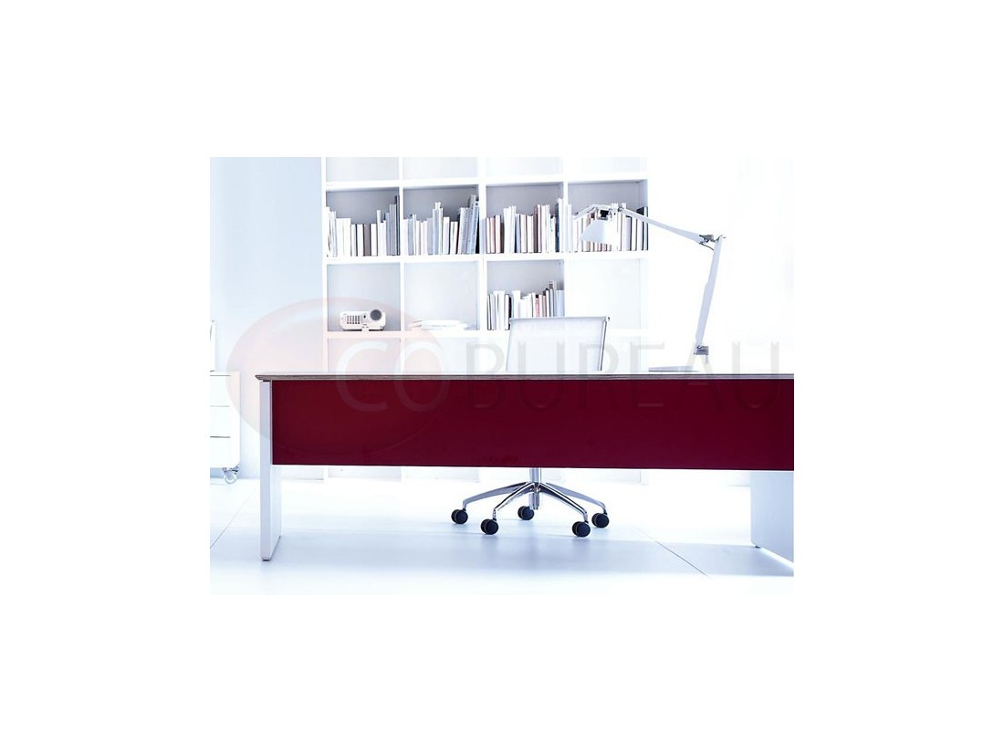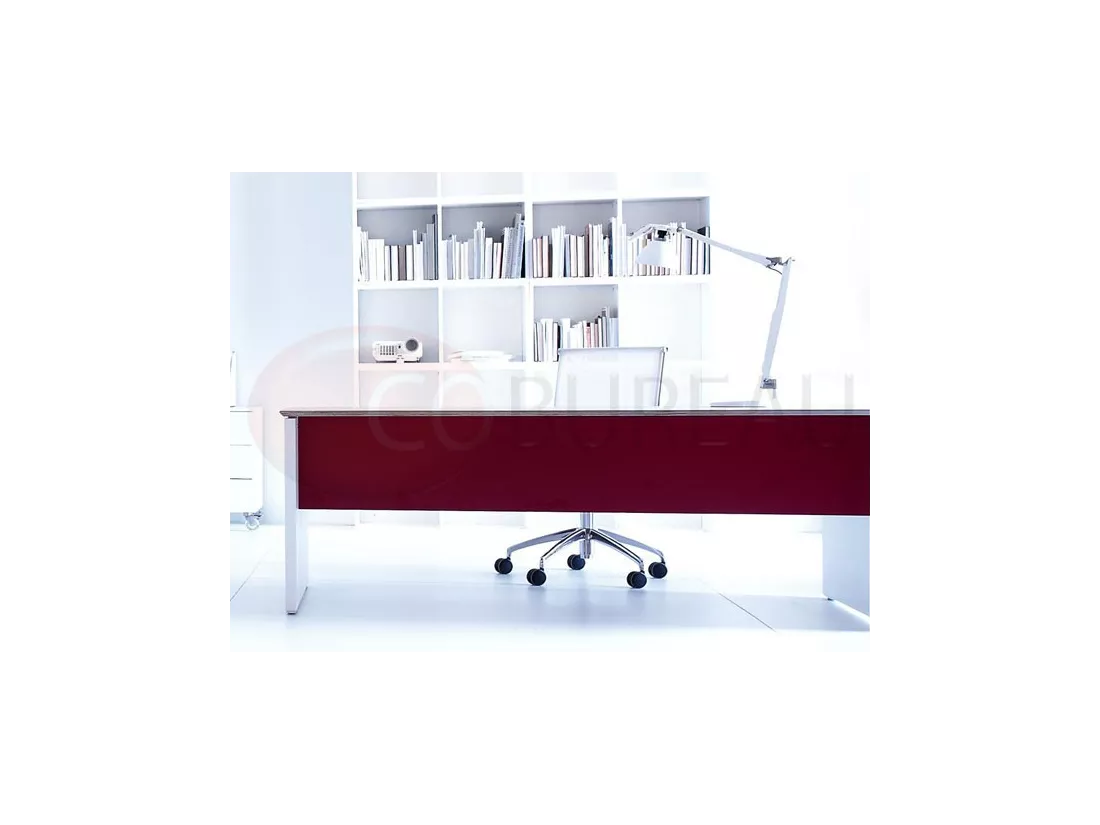 Plateaux de travail en aggloméré bois ép. 20mm, stratifié haute résistance 10/10 disponibles en 98 coloris, chants en multiplis biseauté à 45°, ou en verre trempé retro-laqué en 3 coloris ép. 10mm.