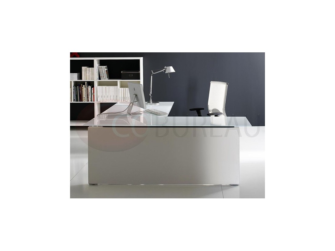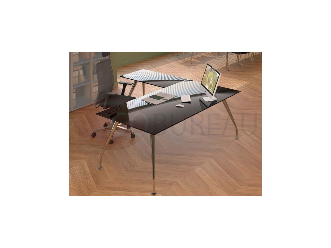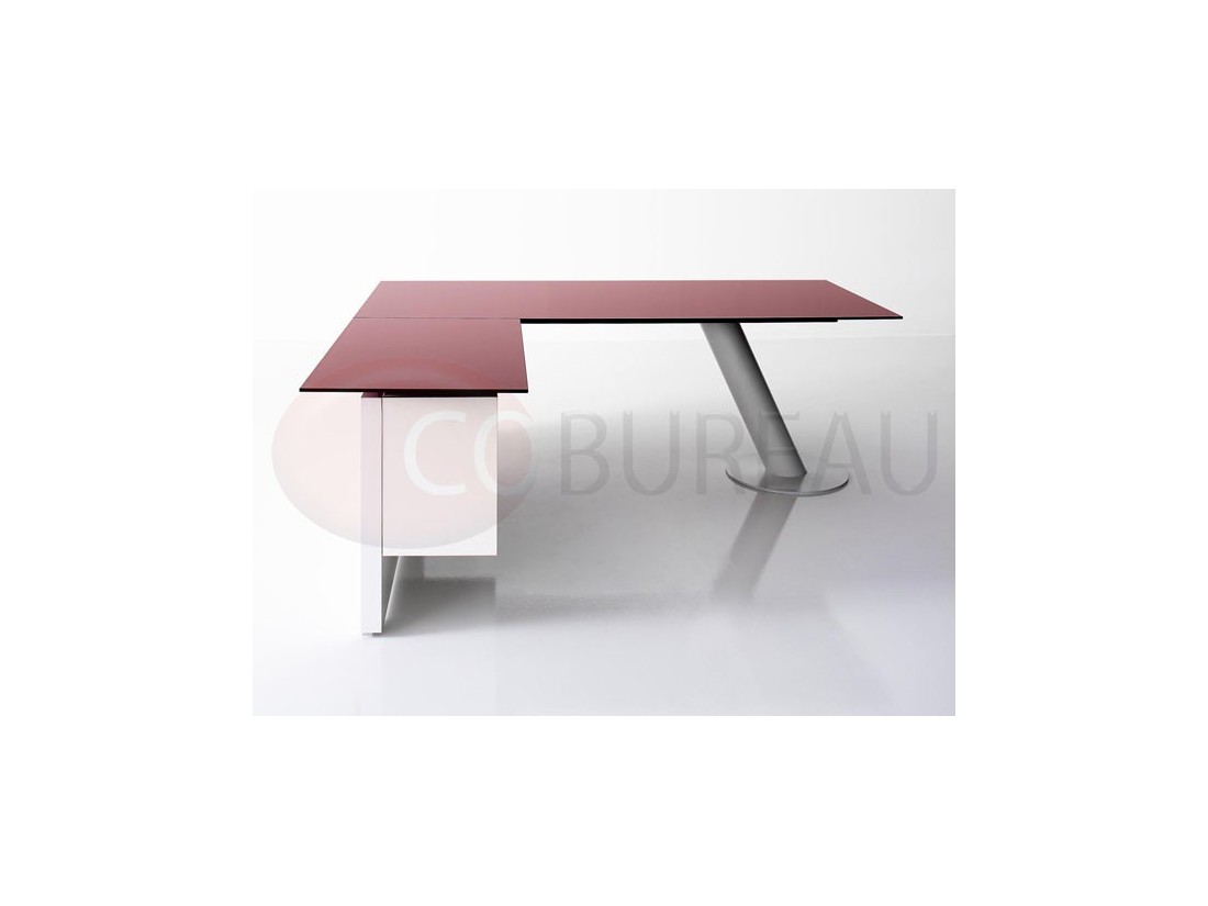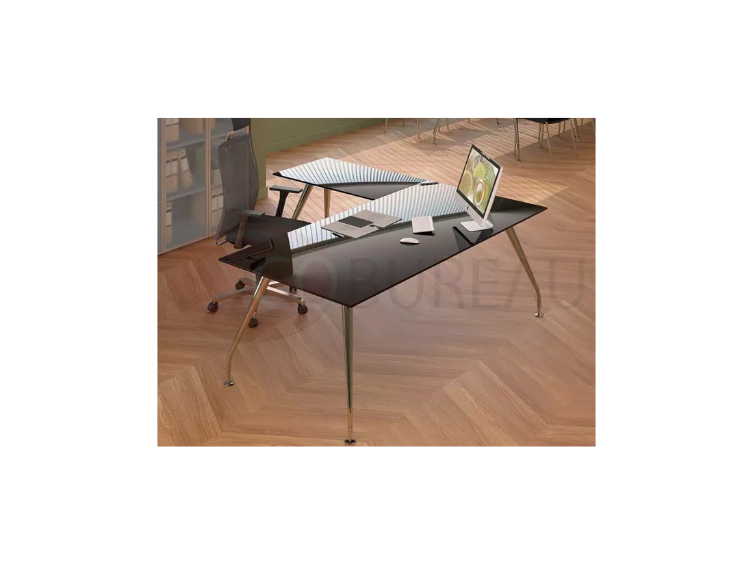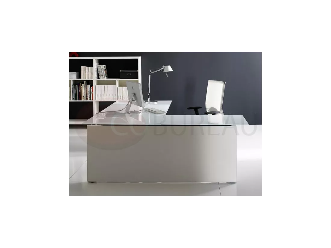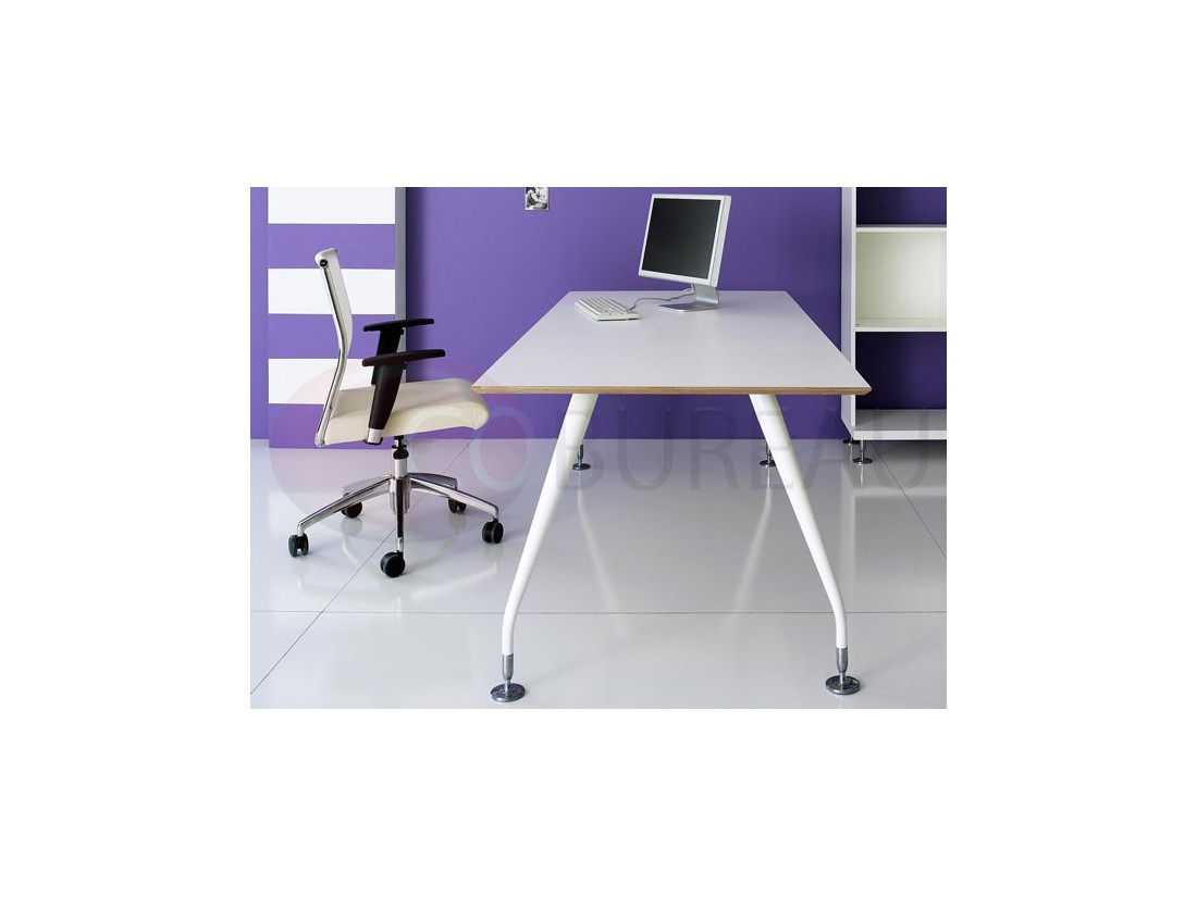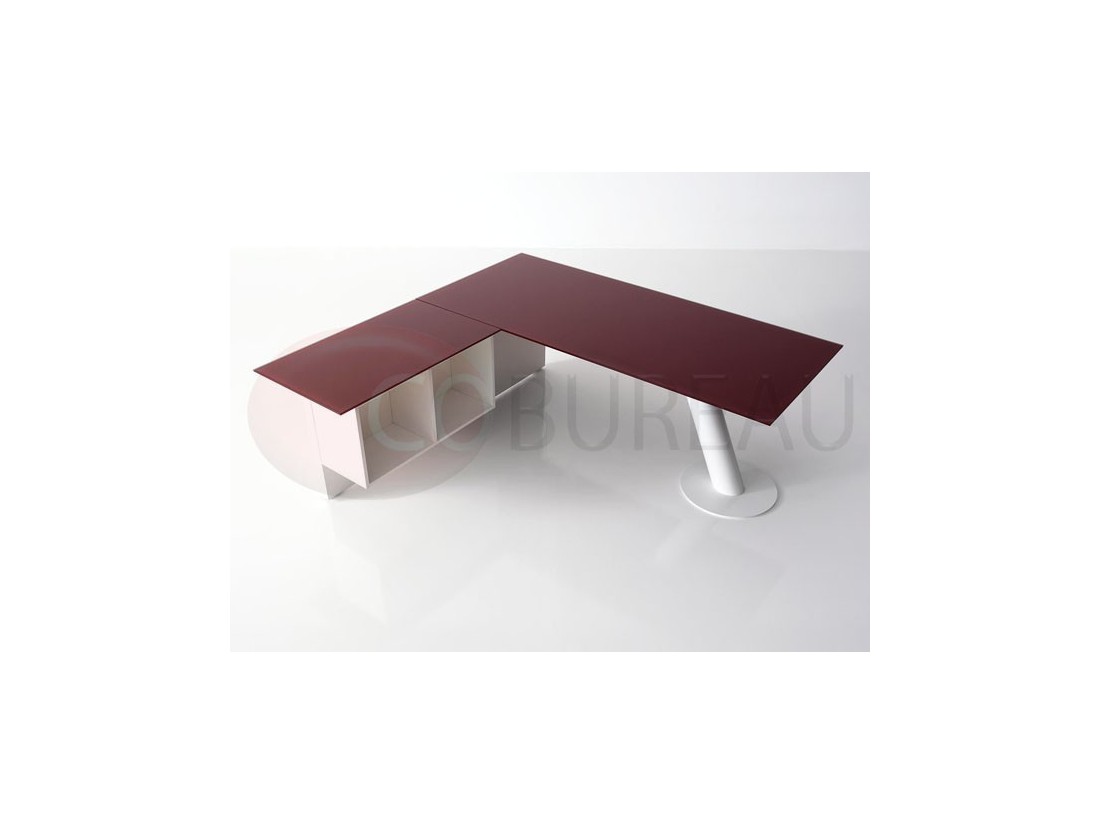 Plateaux de travail en aggloméré bois ép. 20mm, stratifié haute résistance 10/10 disponibles en 98 coloris, chants en multiplis biseauté à 45°, ou en verre trempé retro-laqué en 3 coloris ép. 10mm.