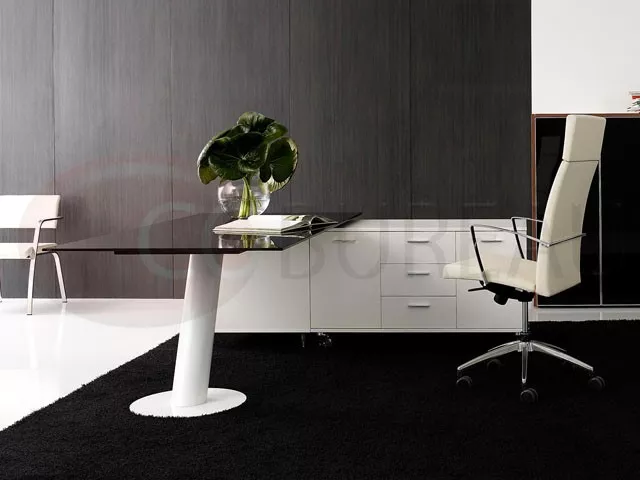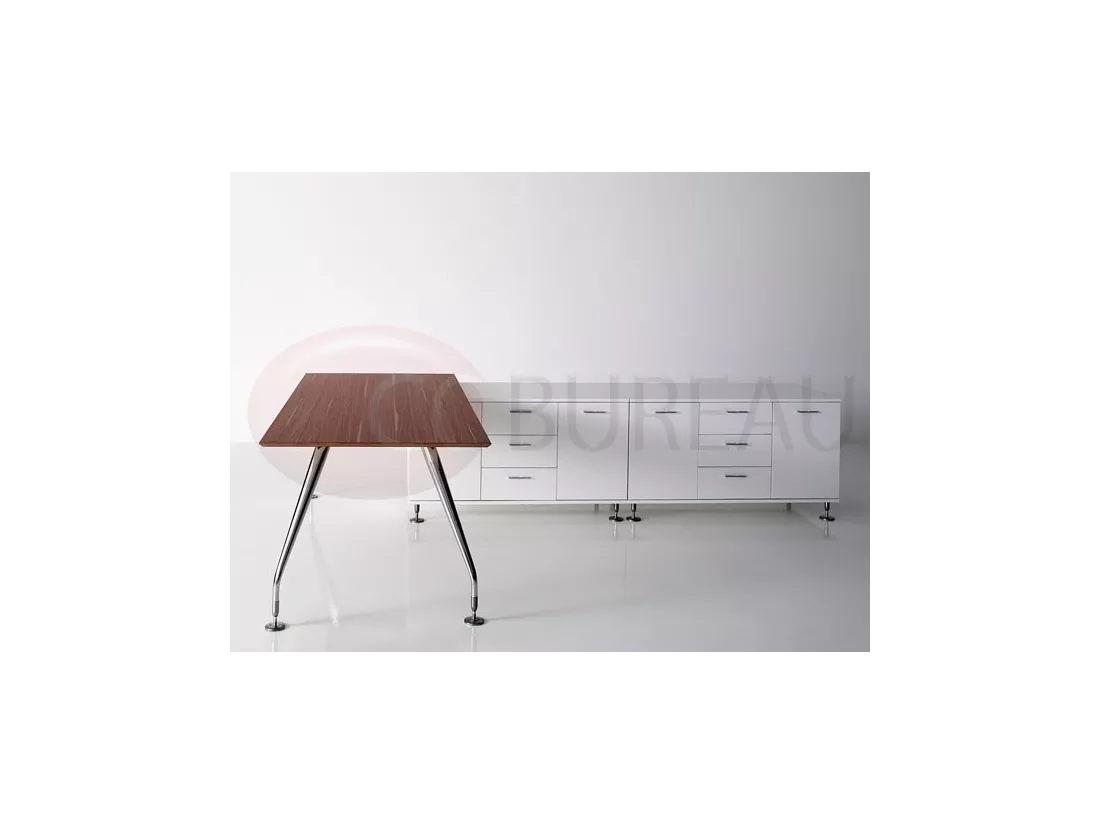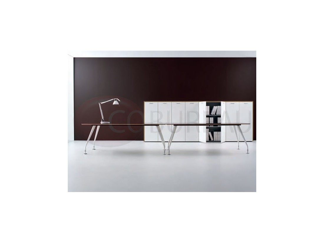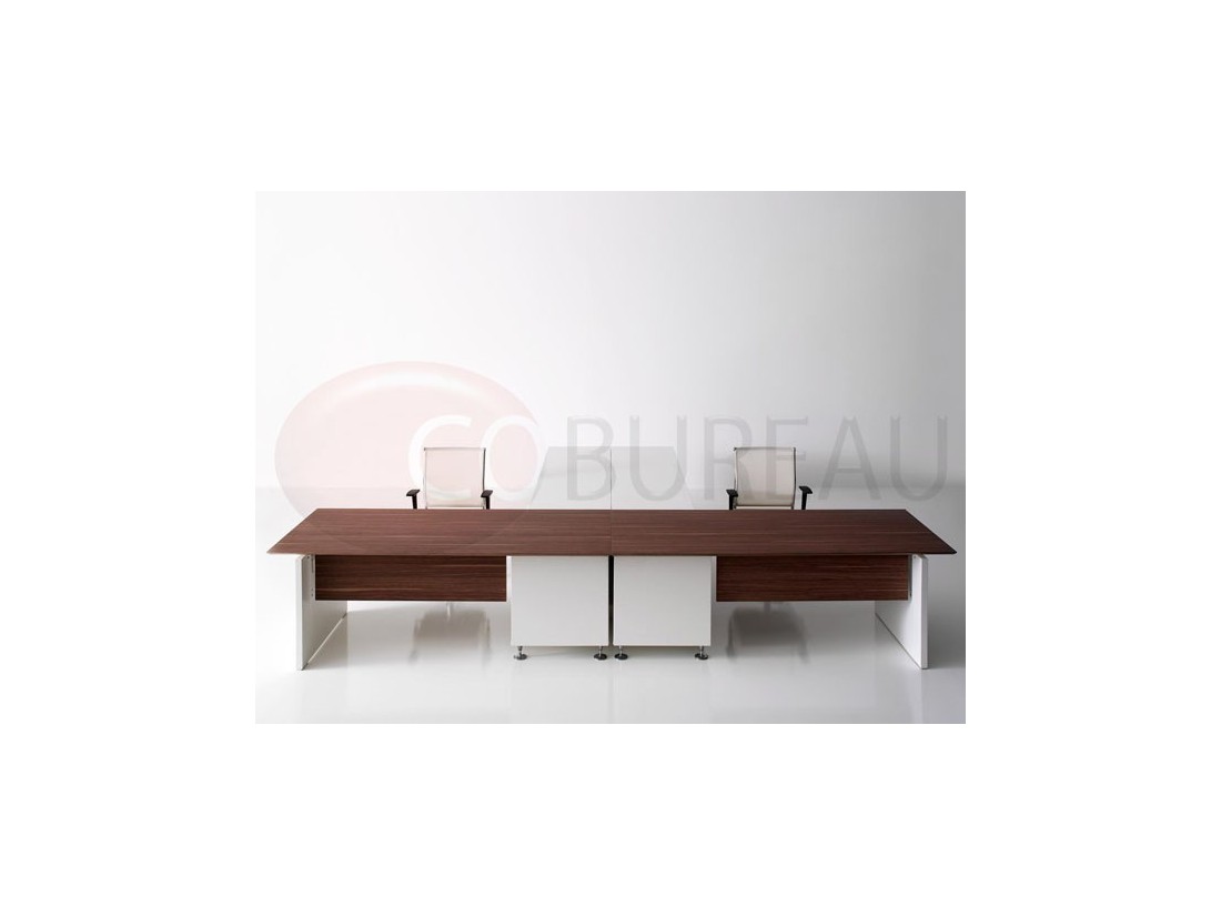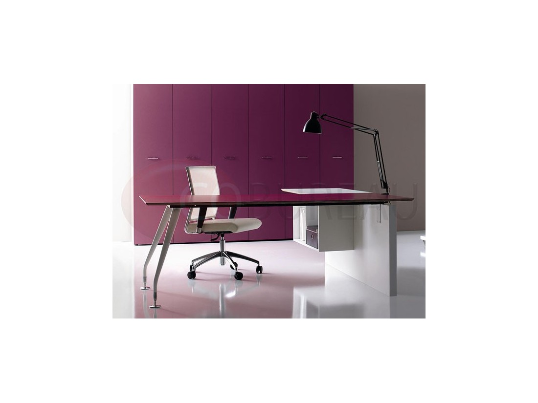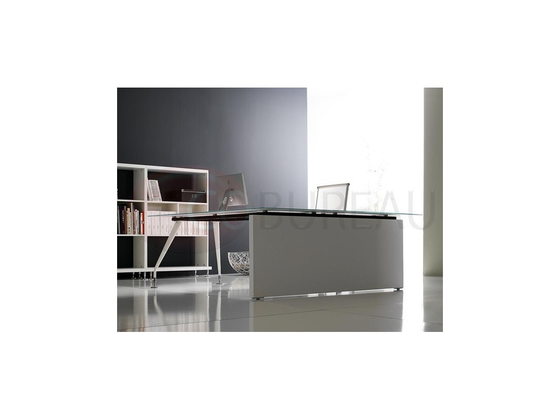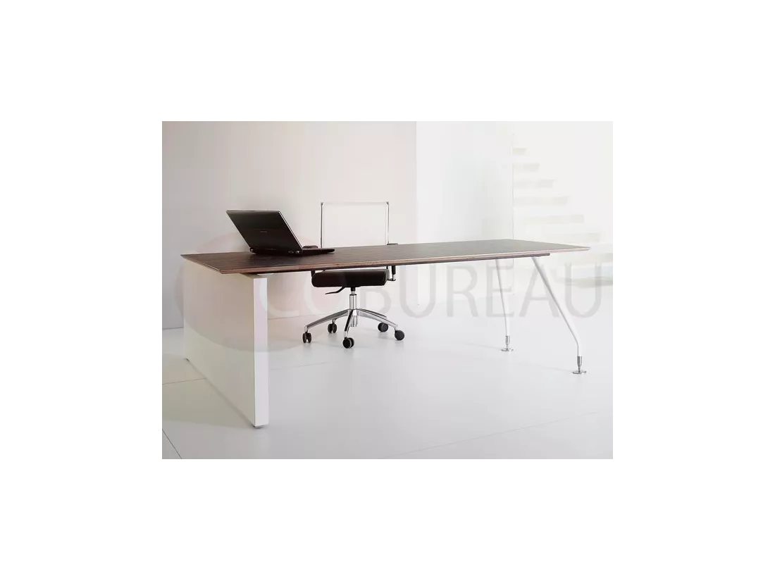 Plateaux de travail en aggloméré bois ép. 20mm, stratifié haute résistance 10/10 disponibles en 98 coloris, chants en multiplis biseauté à 45°, ou en verre trempé retro-laqué en 3 coloris ép. 10mm.