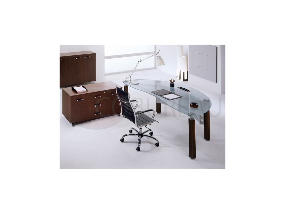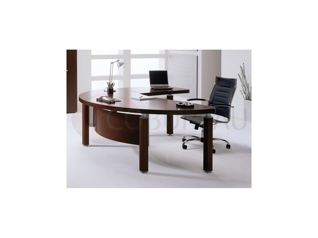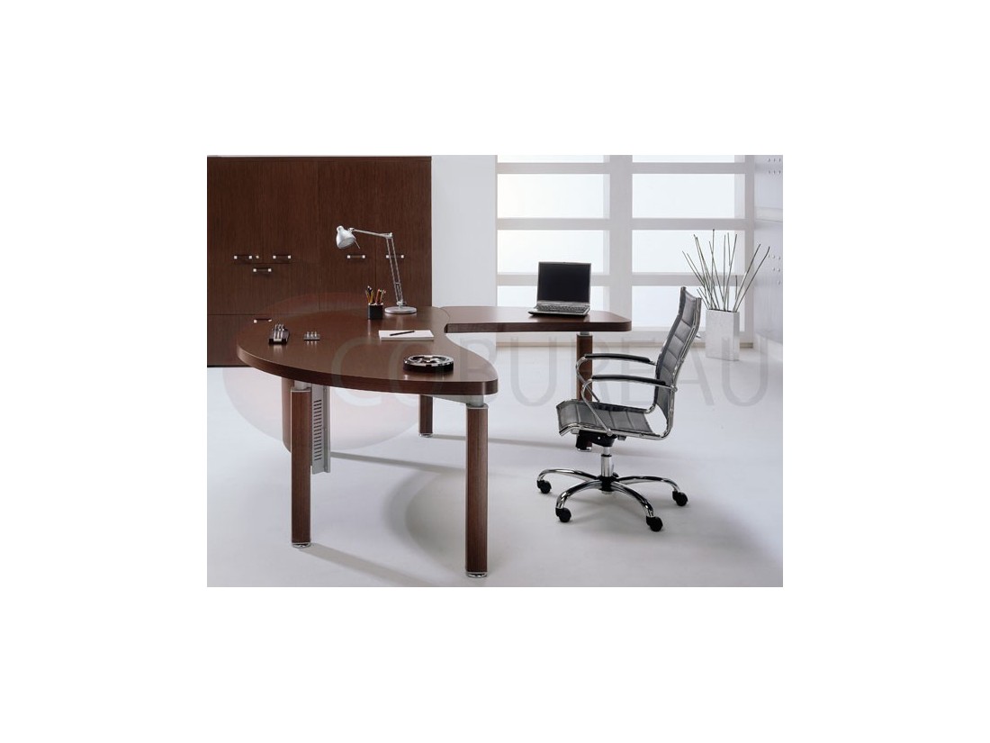Structures pieds colonne, revêtus en bois, fixés au châssis sous-plateau, ou pieds panneaux en plaquage bois ép. 51mm vdf ép. 18mm.