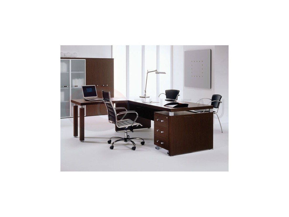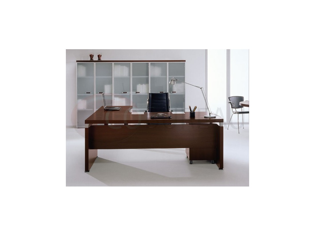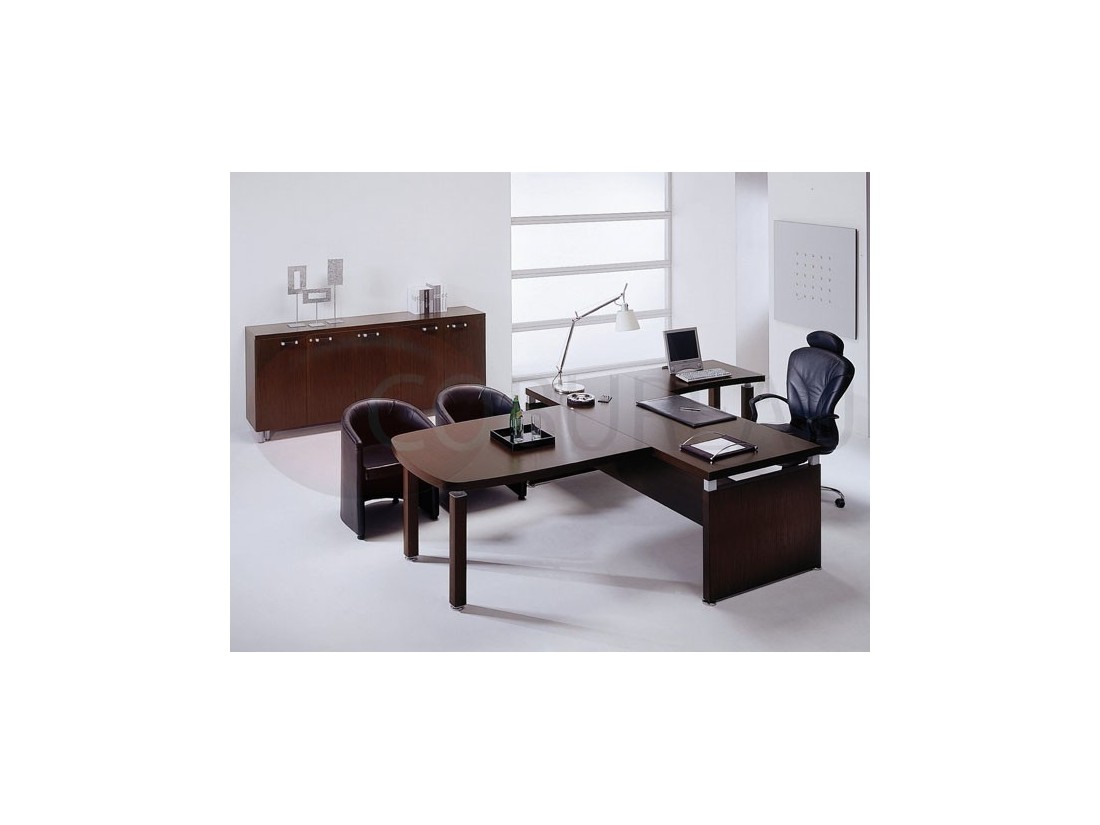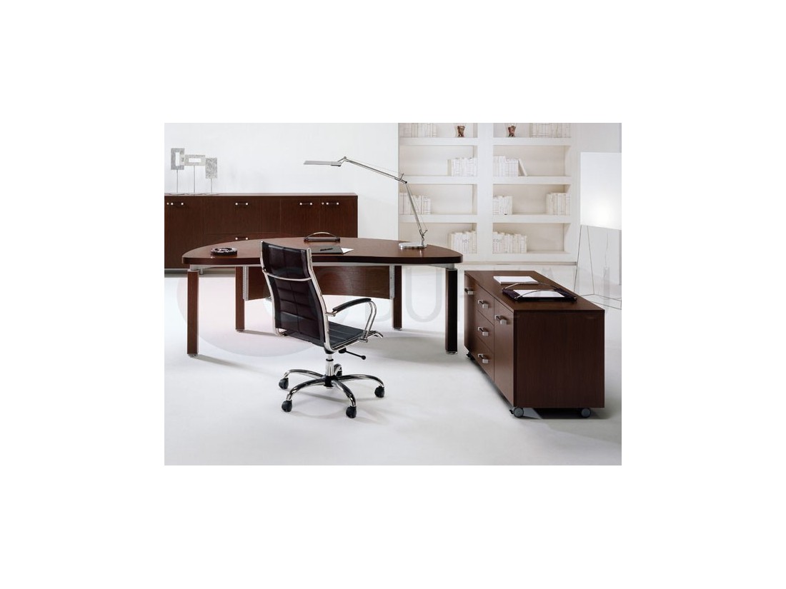 Leader est caractérisée par des formes sinueux pour mettre l'accent sur la production artisanale des différents articles de la gamme. Le plaquage wengé et les structures métalliques se lient pour créer des espaces bureau à l'avant-garde, sans renoncer à la chaleur du bois.