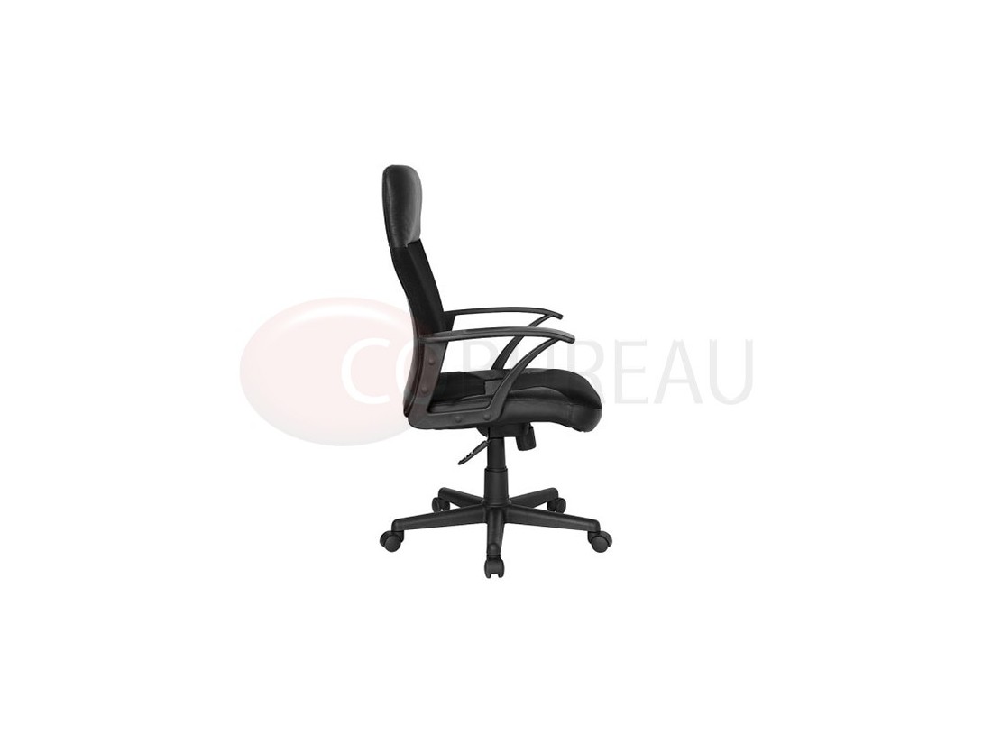 Assise et dossier ergonomiques, très agréables, réglable en hauteur, épais rembourrage, système basculant, réglable en intensité, accoudoirs en polypropylène, revêtement bi-matières : croûte de cuir et tissu nid d’abeille assure une excellente circulation de l'air pour plus de confort.