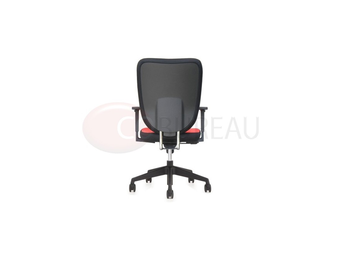 Un piétement en nylon avec roulettes freinées, un mécanisme synchrone blocable 3 positions avec réglage de la tension et système anti-retour, une assise et un dossier rembourrés en mousse de polyuréthane galbé (flexibles et indéformables), un dossier réglable en hauteur par lame up&down ainsi qu'une paire d'accoudoirs réglables en hauteur.
