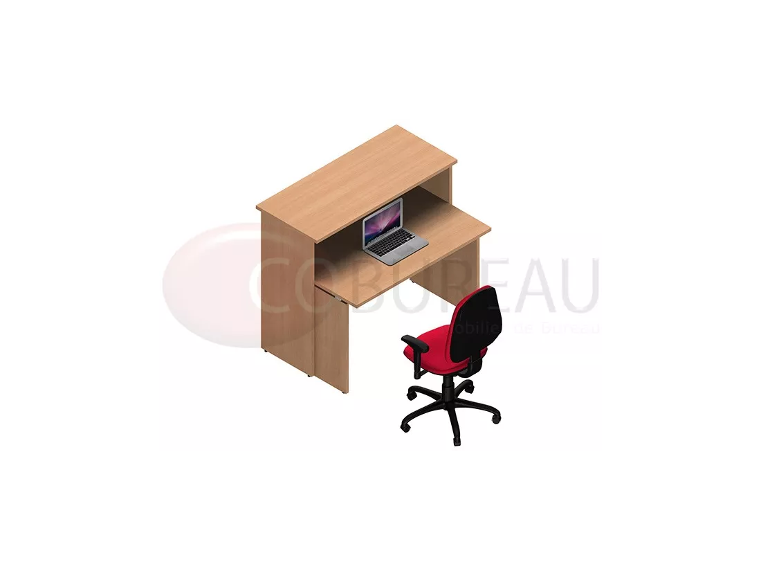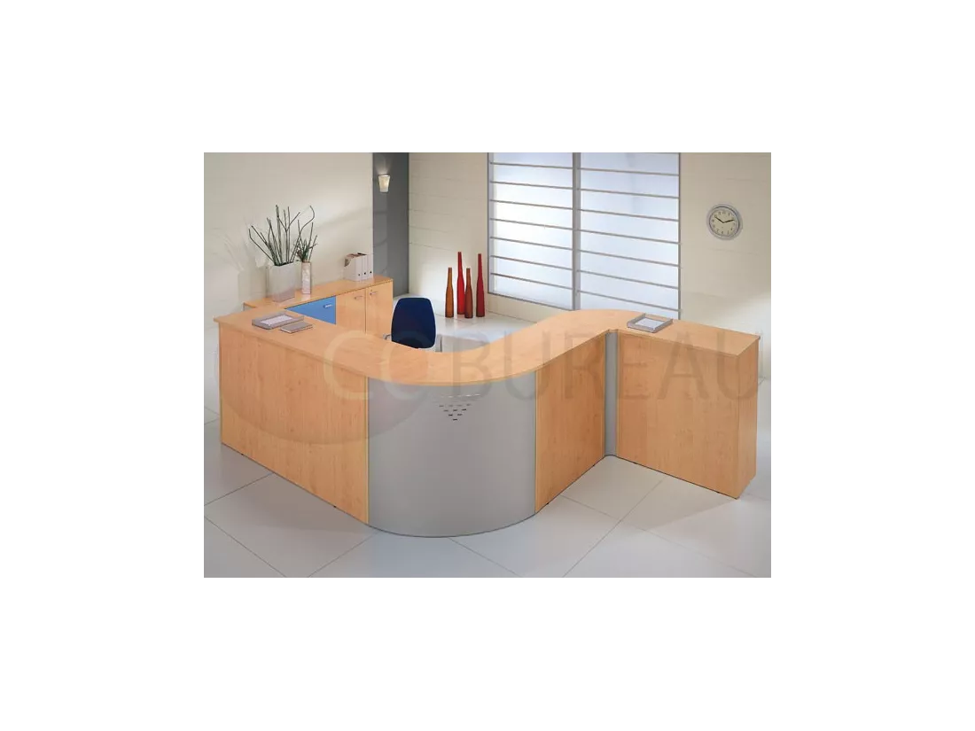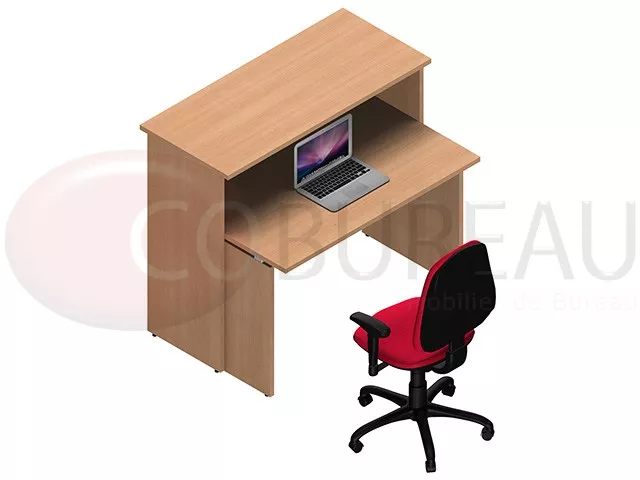 Comptoir d'accueil droite Kamos H 109 x L 125 x P 85 cm, équipés d'une banque accueil L 125 cm avec bureau droit 120 cm.