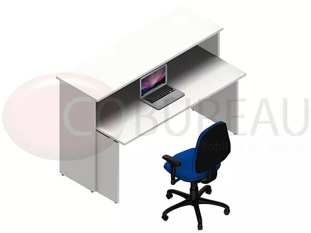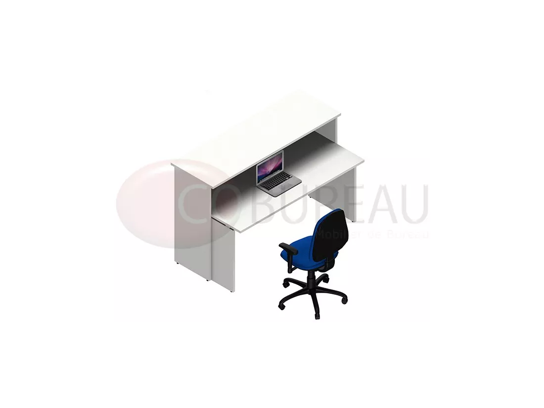Comptoir d'accueil droite Kamos H 109 x L 165 x P 85 cm, équipés d'une banque accueil L 165 cm avec bureau droit 160 cm.