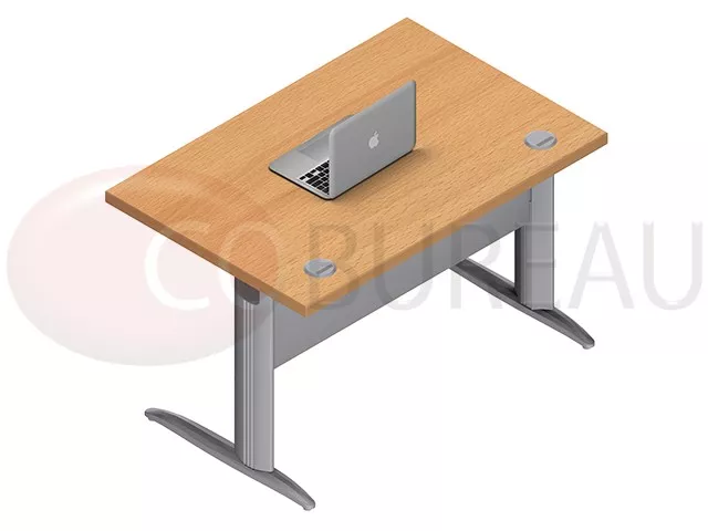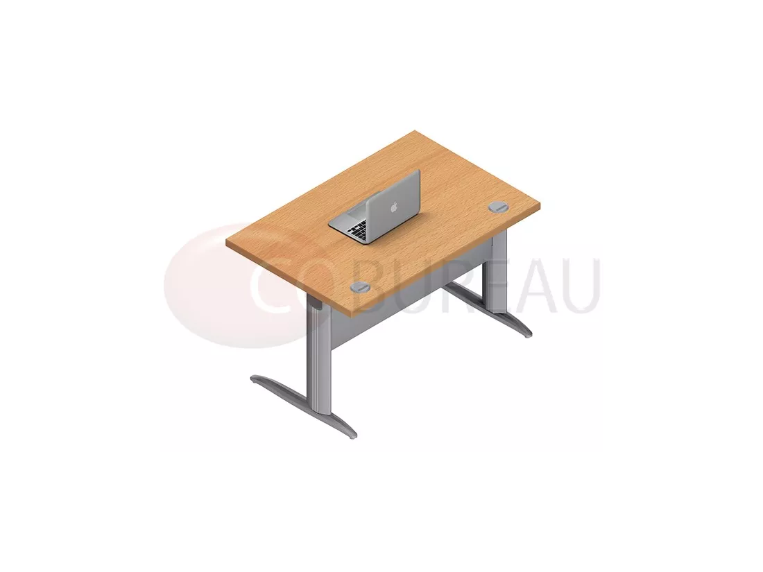 Passage des câbles intégré dans le bureau : par le pied (carter amovible de l'intérieur).