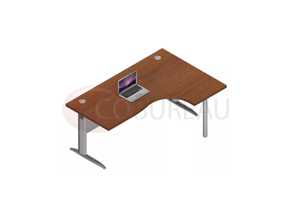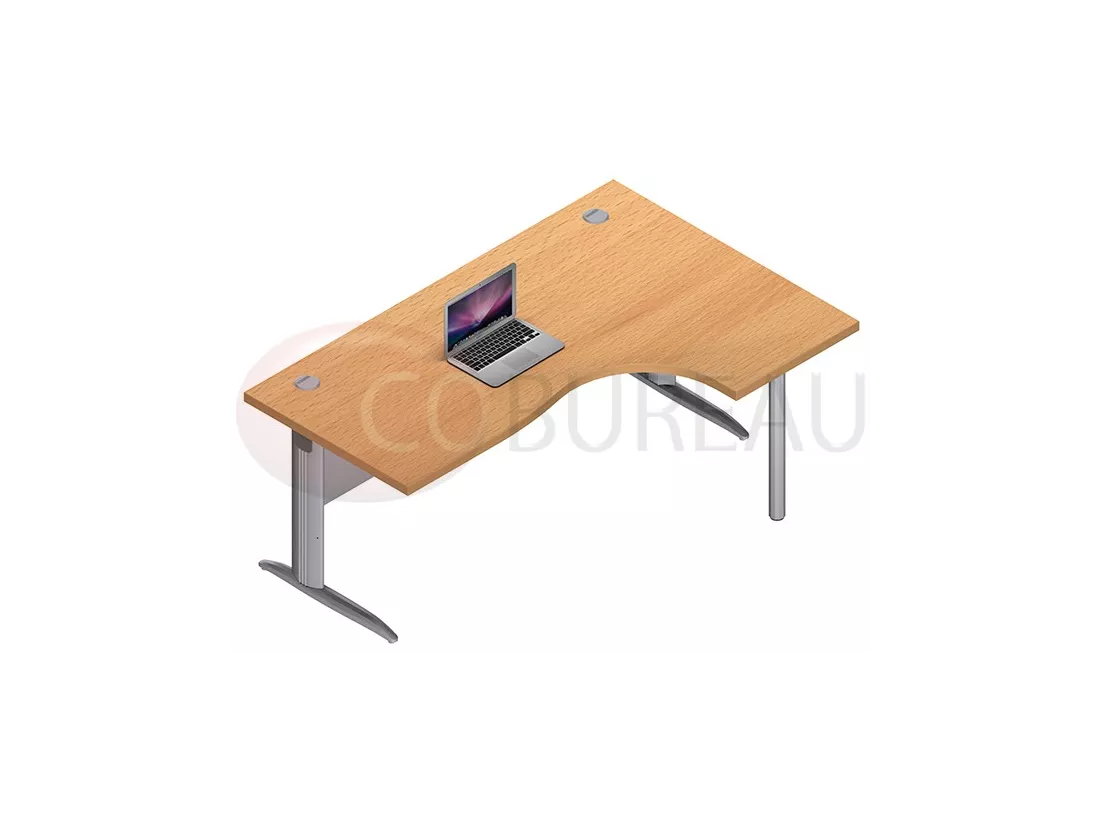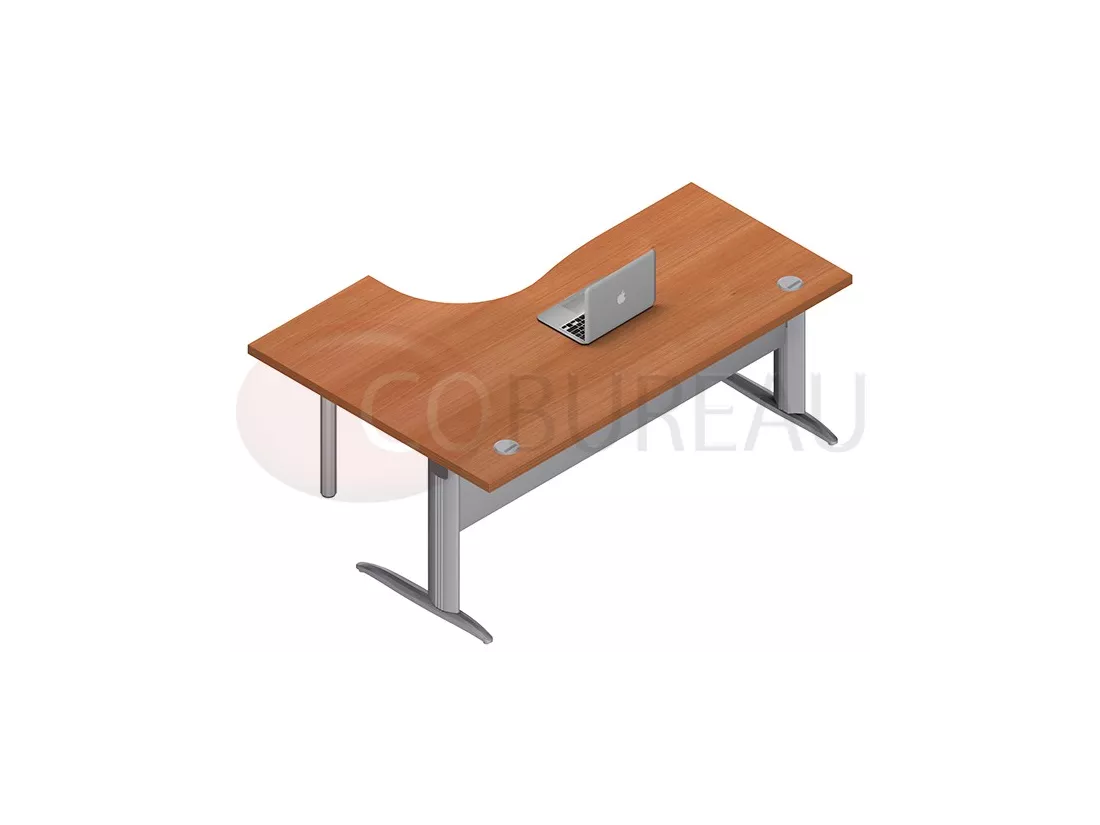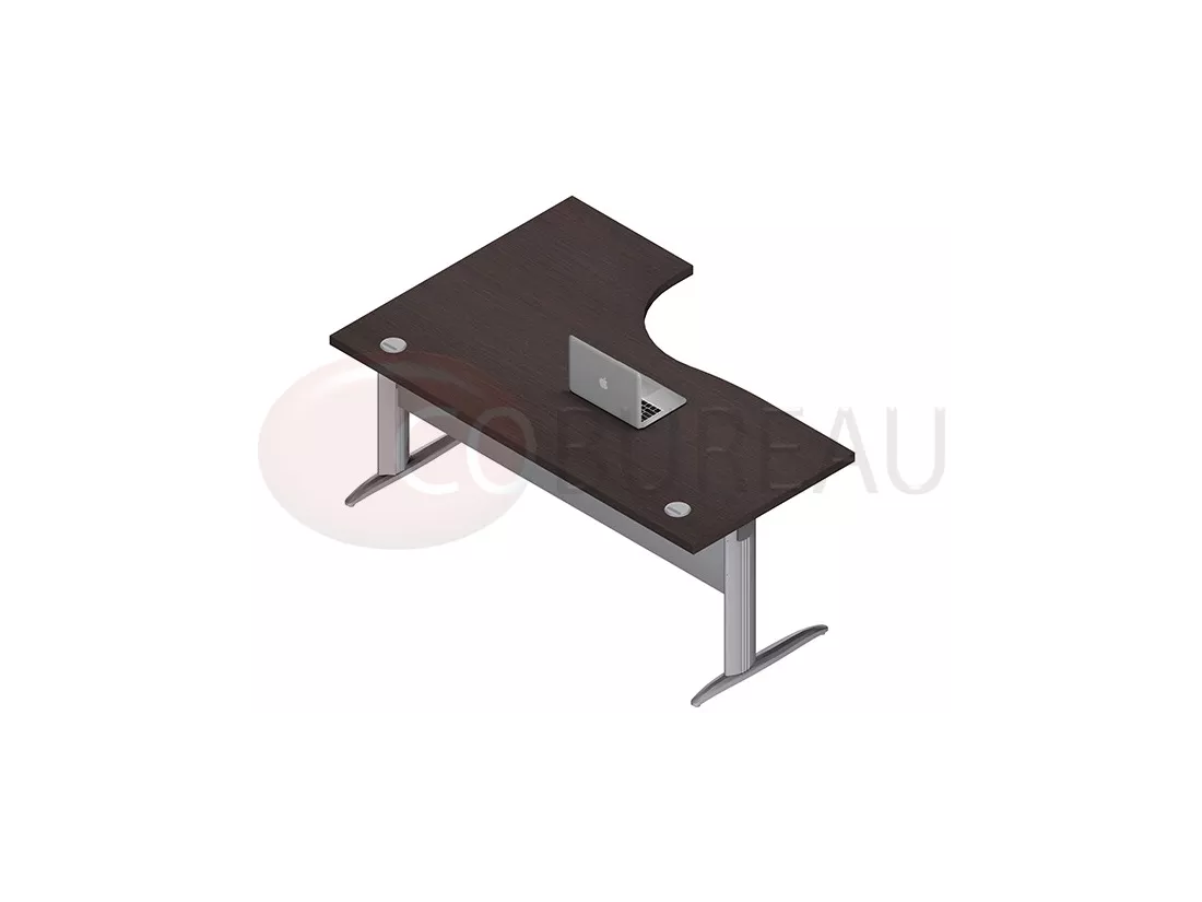 Surface de travail ergonomique. Intègre les espaces bureau, informatique et retour. Piétement " L" métal aluminium.