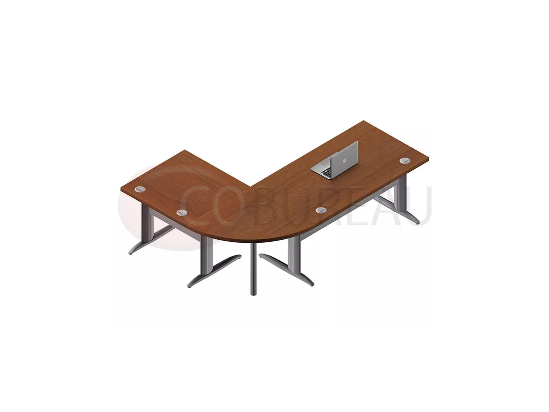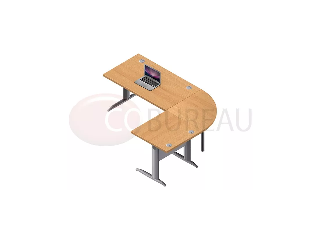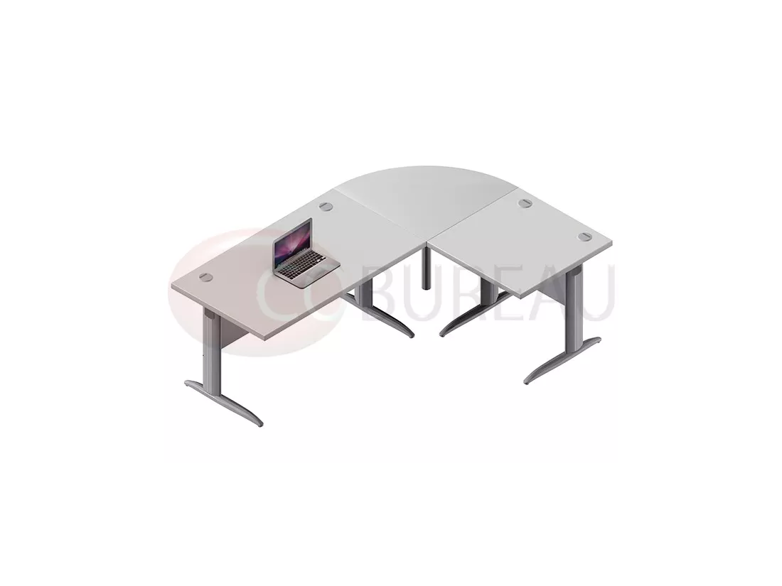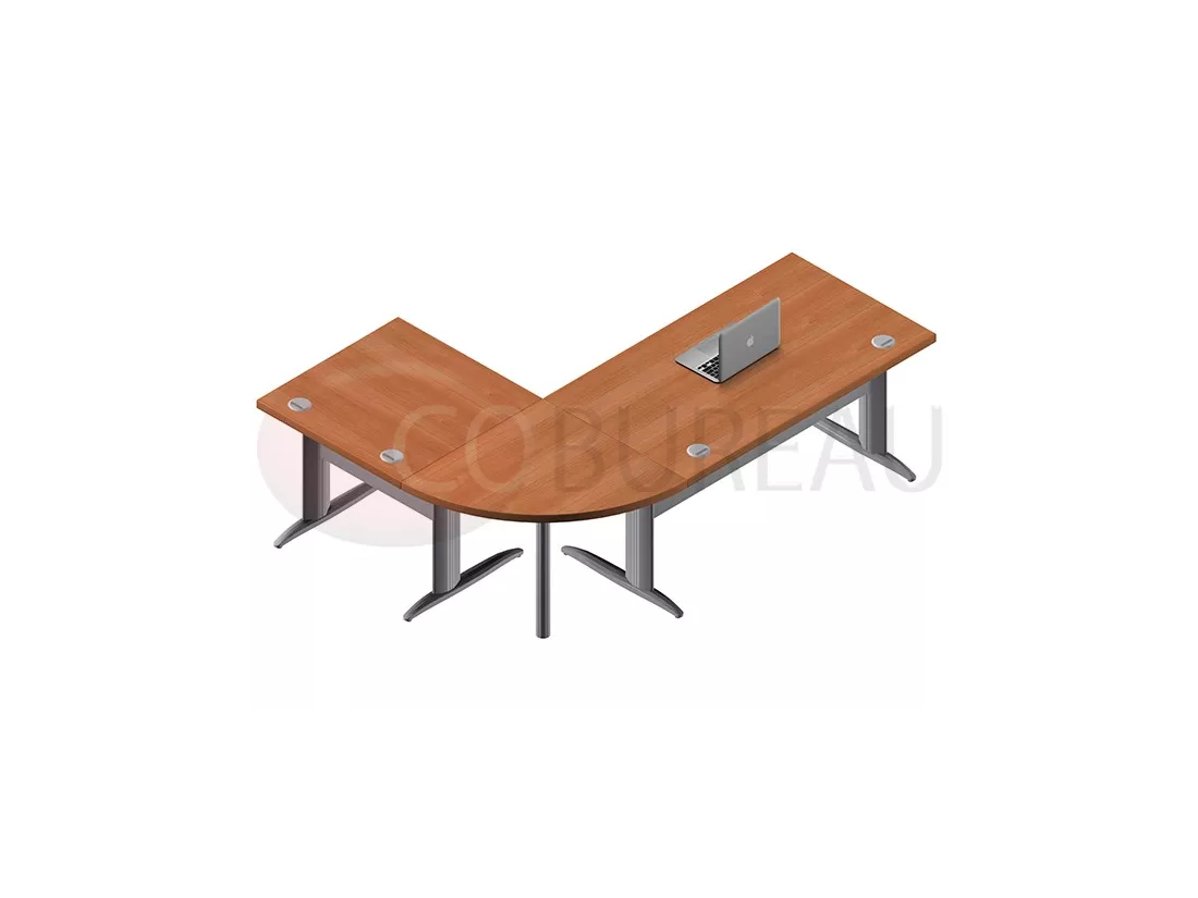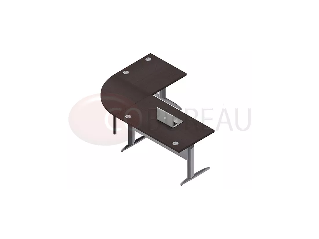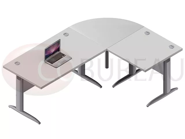 Surface de travail ergonomique. Intègre les espaces bureau, informatique et retour. Piétement " L" métal aluminium.